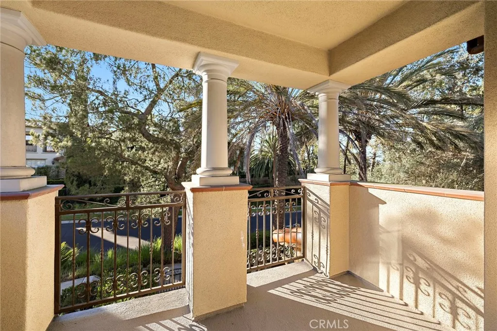 Welcome to a sanctuary of sophisticated coastal elegance nestled in the exclusive enclave of Ziani, Newport Coast. This exquisitely reimagined residence offers an unparalleled lifestyle of luxury and refinement, where every detail has been thoughtfully curated to elevate daily living into an art form. Step into an impeccably styled interior, where a crisp white palettes and rich wood accents create an atmosphere of serene sophistication. Boasting three spacious bedrooms and a refined den/office, this home seamlessly blends comfort with high design. Expansive living spaces are bathed in natural light, flowing effortlessly onto two generous balconies that capture gentle ocean breezes and tranquil vistas - ideal for relaxation or alfresco entertaining. Arched doorways and plantation shutters lend timeless architectural charm, while designer finishes add modern flair, crown molding, wide-plank flooring, and recessed LED lighting. A chefs dream kitchen is airy and expertly appointed with a quartz island, counter seating, a built-in SubZero refrigerator, high-end stainless steel appliances, and a striking designer backsplash. The adjacent dining room and inviting living room with a glowing fireplace are perfect for sophisticated entertaining or intimate gatherings. Additional highlights include a second-level laundry room and a finished two-car garage with abundant storage offering added convenience. Residents of Ziani enjoy access to an array of resort-style amenities, including a private pool and spa, clubhouse and putting greens. Ideally located moments from world-class golf c
