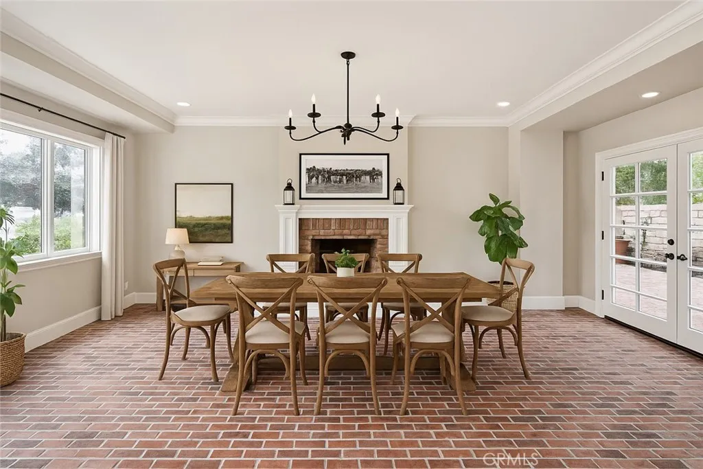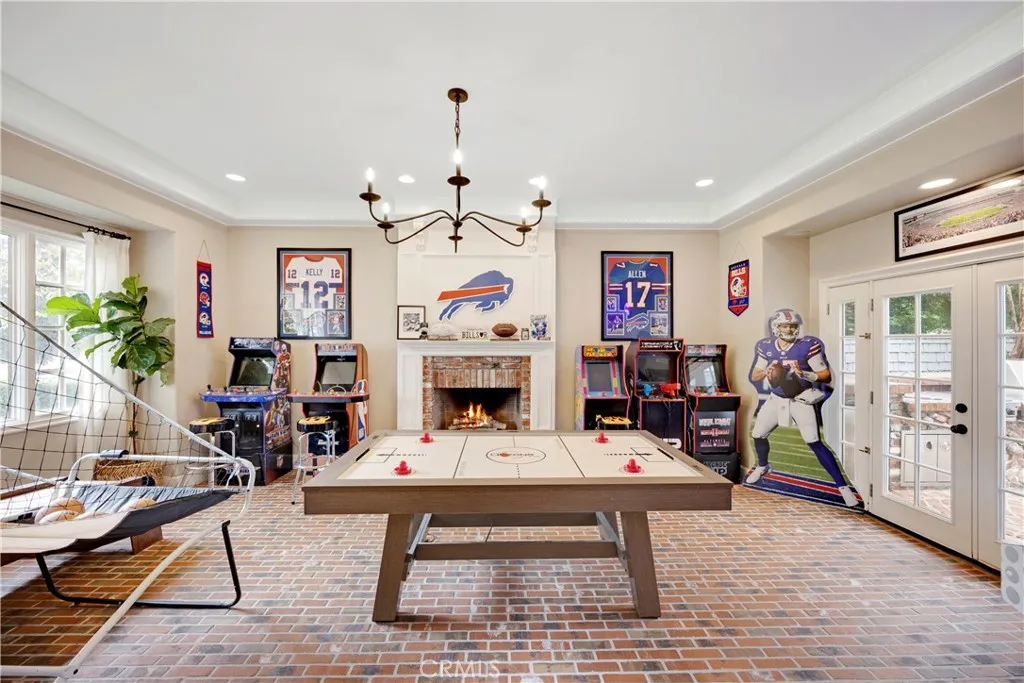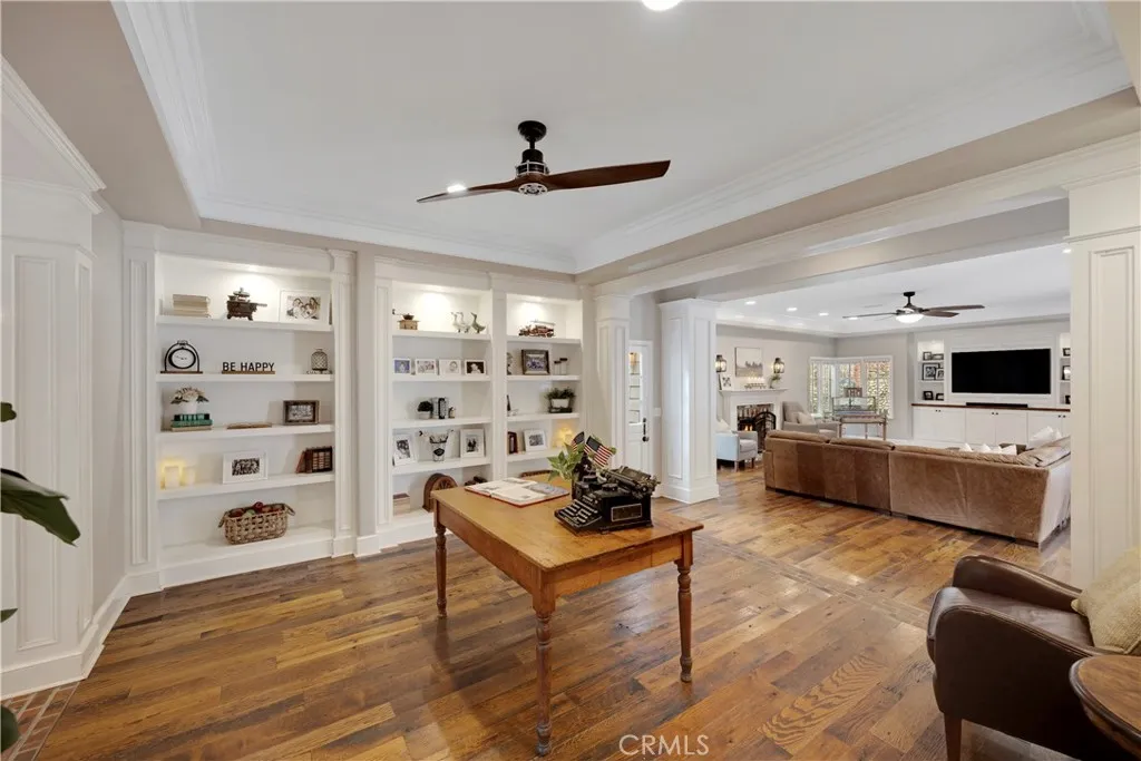 Welcome to 23181 Via Celeste, a modern farmhouse estate behind the gates of Coto de Caza. This five-bedroom, four-and-a-half-bath Craftsman home with an office and large bonus room offers the size, upgrades, and privacy that define Coto living. The main level features open living areas with custom distressed hardwood floors, crown molding, and designer lighting. The chefs kitchen includes beamed ceilings, quartz countertops, a large island with secondary sink, ample seating, and a walk-in butlers pantry. Premium Sub-Zero refrigerator and Viking range and oven combine performance with timeless design. A formal dining room with brick flooring and fireplace adds warmth and elegance. The family room connects to a wood-accented library, creating an open and inviting space for entertaining. A custom brick fireplace and built-in entertainment wall anchor the room, which is large enough for gatherings of any size. Upstairs, the primary suite offers vaulted ceilings and a spa-style bath with a freestanding soaking tub, dual vanities, quartz counters, and walk-in glass shower. Four additional bedrooms, including one ensuite, provide flexibility for guests, home office, or gym. Upstairs laundry adds convenience. The backyard delivers resort-style living with a pool and slide, spa, grotto, and outdoor shower. An open outdoor kitchen with built-in BBQ, seating area, and fire pit is perfect for entertaining. A large balcony with fireplace and heater overlooks the pool and spa from the second story, while a gated courtyard with basketball hoop adds recreation for all ages. Additional feat