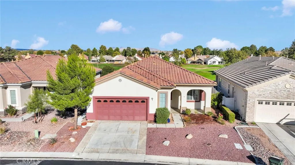 MOTIVATED SELLER! Submit your offer! Welcome to the highly sought-after 55+ gated community of Solera at Jess Ranch. This light-filled home features an open-concept kitchen, dining, and living area with high ceilings, a cozy fireplace, and expansive sliding glass doors showcasing views of the Ashwood Golf Course. Step outside to a covered, wind-protected patio and a low-maintenance yard with a fountain, nectarine tree, roses, and mature landscaping. The guest bedroom is conveniently located near the front of the home and offers a walk-in closet with direct access to the main bathroom. A bonus room with double doors makes an ideal office or den. The spacious primary suite features a large walk-in closet and a spa-like bath with dual sinks, soaking tub, and separate glass shower. Additional features include an indoor laundry room and a two-car garage with extra space for a golf cart or storage. Solera at Jess Ranch offers 24-hour roaming security and resort-style amenities including indoor and outdoor pools, spa, fitness center, tennis, pickleball, bocce ball, walking trails, and more. Conveniently located near Jess Ranch Marketplace with shopping, dining, and entertainment. Enjoy peaceful living with endless opportunities to stay active and social.