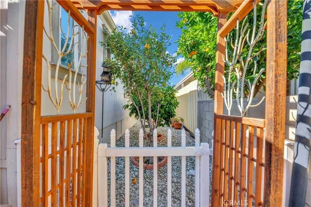 Welcome to this spacious and well-maintained 3-bedroom, 2-bathroom double-wide home offering comfort, style, and thoughtful upgrades throughout. This home is in the inviting Fairview Estates 55+ Community, where residents enjoy a clubhouse, pool, spa, and a variety of social activities. The remodeled kitchen features beautiful quartz countertops, a tile backsplash, and newer appliances. The home has no carpet, showcasing attractive plank flooring throughout, and two skylights that fill the space with natural light. The primary suite offers both a shower and a luxurious walk-in tub in the bathroom. Both toilets were recently replaced. Relax and entertain on the spacious, fully screened front porch with a tiled floor perfect for sitting with guests while enjoying the view, and/or unwind in the backyard with beautiful citrus trees, including a pear tree. Additional features include sheds located in the carport area for extra storage and a ramp providing convenient wheelchair access to both the house and the back patio. With guest parking conveniently nearby and optional furniture available, this home combines comfort, functionality, and charm ready for you to move in and make it your own!