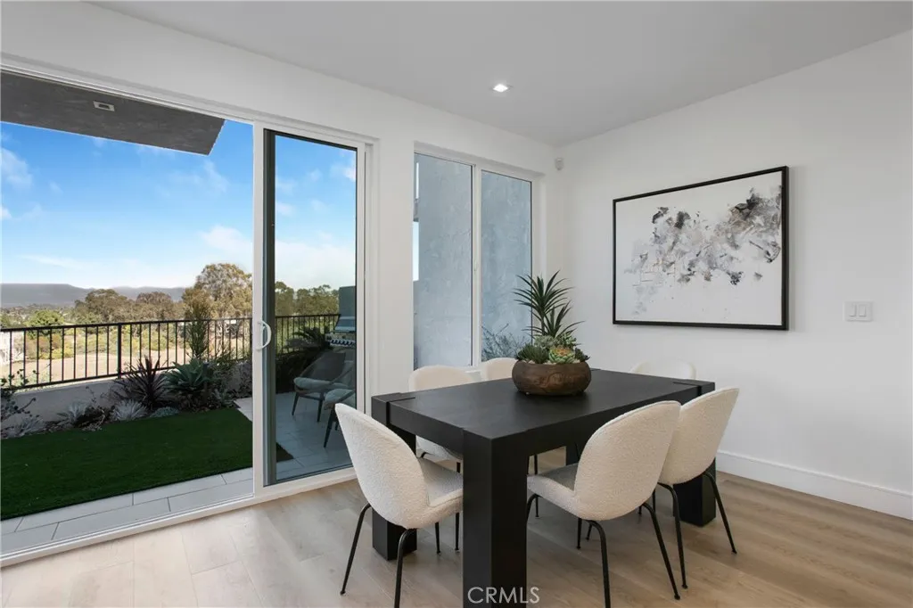 Exquisite Brand-New Contemporary Home in Laguna Niguel. Nestled at the end of a serene cul-de-sac, this corner-unit contemporary residence offers the perfect combination of modern design, luxury finishes, and smart-home technology. With 3 bedrooms, 3 bathrooms, and 1,975 sq. ft., this home is ideal for families, entertaining, and effortless Southern California living. Step inside to a bright, open-concept floor plan featuring soaring high ceilings and expansive windows that frame breathtaking city light views. Every detail has been thoughtfully designed from the European cabinetry and white oak reeded interior doors to the custom wrought-iron staircase railing. The home's high-end finishes and designer touches create a harmonious blend of elegance and functionality. The gourmet kitchen is a centerpiece of the home, featuring European cabinetry, a wine captain, built-in appliances, and an open layout that flows seamlessly into the living and dining areas perfect for hosting family and friends. This residence is fully prewired for home automation, including integrated surround sound, ceiling speakers, and ready-to-install TVs in every bedroom, making technology seamless and intuitive. Security and peace of mind are ensured with a Ring door camera and burglary alarm system, while a central vacuum system adds convenience to daily life. Each bathroom reflects modern luxury, with LED mirrors, sleek fixtures, and thoughtfully designed layouts. Closet organizers maximize storage while maintaining style and order. Outdoor living is equally impressive, featuring a built-in BBQ and