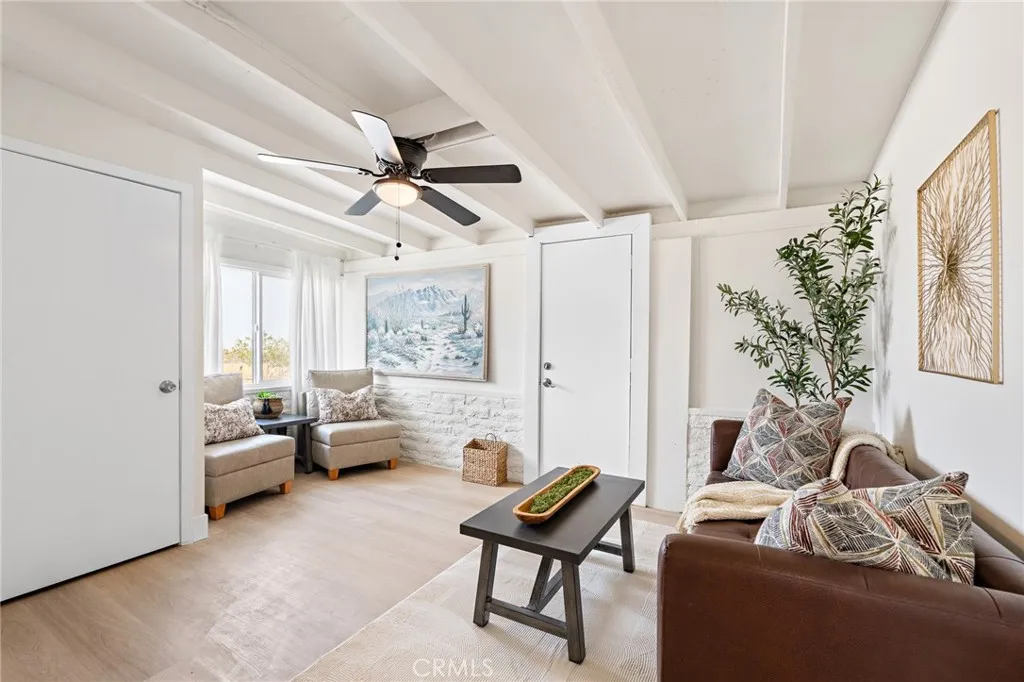 Flamingo Heights Hideaway: Set against the wide-open expanse of the Hi-Desert, this 1963 brick home blends midcentury character with thoughtful updates, creating a retreat that is both stylish and enduring. Featuring 3 bedrooms, 1 bath, and a bonus room for a studio, office, or even a coveted 4th bedroom, the layout invites creativity and flexibility. Recent improvements include high-end laminate wood flooring, a brand-new roof, and privacy fencingadding modern comfort to timeless desert charm. The property spans 5 acres with unobstructed views of Goat Mountain, buffered by 7.5 acres of adjacent government land to preserve your sweeping panoramas and ensure lasting privacy. An original homestead cabin rests quietly among bamboo groves, awaiting transformation into a Western bar, creative workshop, or meditative retreat. Outdoor living is defined by tranquil days and starlit nightsexperience breathtaking sunsets across the mesa, then watch the desert sky come alive with constellations, planets, and the shimmering Milky Way. Just minutes away, indulge in acclaimed farm-to-table dining at La Copine (5 minutes), world-class entertainment at Pioneertowns legendary Pappy & Harriets (15 minutes), and restorative sound baths at the Integratron (8 minutes). Adventure seekers can lose themselves among the boulders of Giant Rock or wander the trails of nearby Joshua Tree National Park, only 20 minutes away. Flamingo Heights Hideaway is more than a homeits a rare opportunity to live in harmony with nature while remaining close to the best of the Hi-Desert. A true desert dream, waiting
