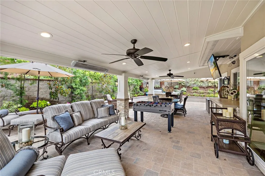 A remarkable home that has been completely and thoughtfully reimagined from top to bottom. Set on an oversized corner lot within Mission Viejos prestigious guard-gated community of Canyon Crest, this COMPLETELY REMODELED 5-bedroom, 3-full bath residence with a 4-car garage offers a perfect blend of modern comfort and exceptional outdoor living. The open-concept floor plan includes the convenience of a main-floor bedroom and bath ideal for guests or a home office. The heart of the home is a fully remodeled kitchen featuring custom cabinetry with pull-out storage, an expanded island, and Bosch stainless steel appliancesseamlessly connecting to the family room with its custom-built cabinetry, beverage center, and new wood fireplace mantel accented by a tiled faade. Hardwood flooring flows throughout the main level, complemented by freshly installed carpet upstairs and custom window treatments throughout. The primary suite has been thoughtfully reimagined with a shiplap accent wall, updated fireplace with new wood mantel and tiled faade, remote-control blinds, and a completely remodeled spa-inspired bathroom including a dual sink vanity, a TOTO smart bidet toilet, and a large walk-in closet with Closet World organizers. Upstairs, the secondary bedrooms feature remote-control blinds and share a beautifully updated hallway bath, while the bonus room or fifth bedroom provides additional flexibility for living or recreation. The outdoor living experience rivals a private resort. A saltwater Pebble-Tec pool and spa anchor the rear yard, surrounded by interlocking pavers, low-mainten