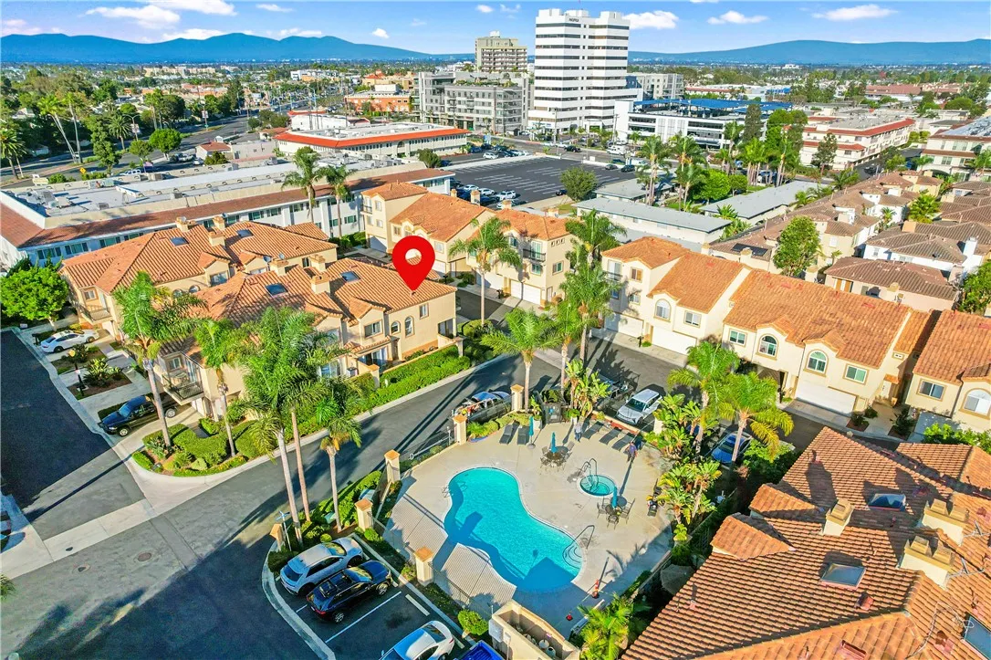 Welcome to Seacliff Palms Huntington Beachs Best Kept Secret! This beautifully updated 2-bedroom, 2.5-bath townhome is a hidden gem in one of Surf Citys most private and peaceful gated enclavesjust 2.5 miles from the beach and a short stroll to Trader Joes, Seacliff Village, Five Points Shopping Center, and top-rated Huntington Beach schools. Tucked inside a quiet cul-de-sac within a cul-de-sac, this home offers the best of both worlds: easy access to all the fun and flair of downtown Huntington, while being perfectly sheltered in a serene, well-maintained, Gated community of only 32 homes. Step inside to find a light-filled loft-style living area with soaring ceilings, a dramatic matte black fireplace trimmed in natural wood, a statement waterfall chandelier in the stairwell, and wall-to-wall windows that overlook the sparkling pool. The downstairs half bath has been stylishly remodeled, and upstairs, both bedrooms enjoy full en-suite bathrooms, creating an ideal layout for privacy and comfort. The larger primary suite includes dual sinks, a soaking tub, separate walk-in shower, a sit-down vanity, a private water closet, and a generous walk-in closet. The oversized kitchen is a dream with sleek cabinetry, abundant counter space, a wraparound breakfast bar, and a spacious walk-in pantry. There is direct access to the garage through the kitchen, and the laundry area is conveniently located inside the large garage. An extra-long driveway provides rare and valuable additional parking. The entire home has been thoughtfully refreshed with new flooring, updated fixtures, and tri