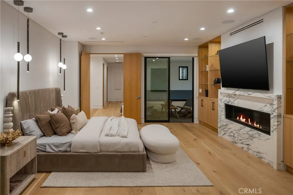 Welcome to 14822 Hesby St, where PRIVACY, vision, precision and elegance converge. A striking newer construction estate that blends modern design with luxury. This state-of-the-art smart home showcases a dramatic glass staircase, soaring high ceilings, and expansive glass pocket doors that open to a seamless indoor-outdoor experience. The chefs kitchen is a showpiece, featuring dual oversized islands, a sleek breakfast bar, and inspiring white oak floors throughout. Retreat to the primary suite with its spa inspired bath, spacious walk-in closet, and two private balconies with sitting area and fireplace. Outside, a resort-style pool, spa, and cabana create the ultimate setting for relaxation and entertaining. Built by MLR Development one of Los Angeless most reputable builders, this residence is a sanctuary of abundance designed for seamless living and timeless beauty.