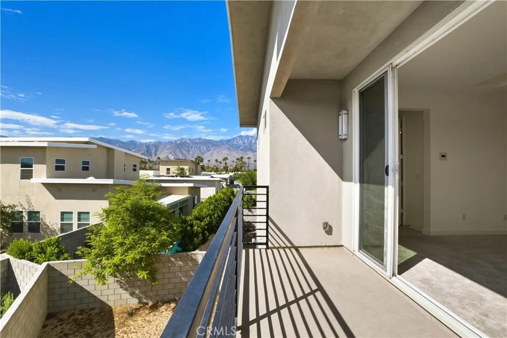 Welcome to your Desert Oasis in the Heart of Palm Springs! Experience refined desert living in this beautifully maintained 4-bedroom, 2.5-bath residence that blends modern comfort, generous space, and resort-style convenience. You enter an airy, sun-drenched living area where natural light pours through expansive sliding glass doors, creating a seamless indoor-outdoor flow. The doors open to a spacious private yard a blank canvas ready for your creative touch, large enough to accommodate a custom pool, outdoor kitchen, or a tranquil desert retreat. The chefs kitchen anchors the main floor with a seamless open-concept layout, ideal for both entertaining and everyday living. A stylish powder room nearby adds convenience for guests, while a well-placed staircase leads to the homes private upper level. Upstairs, youll find four thoughtfully arranged bedrooms, including a spacious primary suite that defines relaxation. Enjoy a walk-in closet, dual vanity, standing shower, soaking tub, and a private balcony showcasing stunning mountain views your personal sanctuary after a long day. Residents of this sought-after community enjoy exclusive access to a sparkling pool and spa, creating a true resort experience year-round. Perfectly located just across from a pristine Tahquitz Creek Golf Resort in desirable South Palm Springs and minutes from Palm Springs International Airport, this home offers quick access to the vibrant energy of Downtown Palm Springs world-class dining, boutique shopping, and iconic nightlife are all within reach. Local amenities add to the appeal, making this