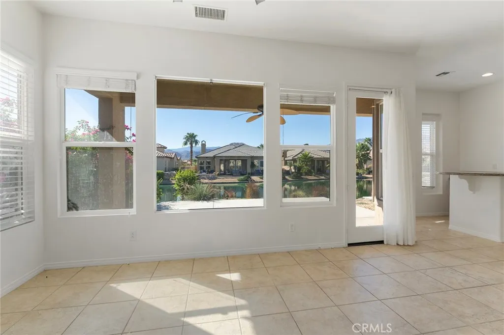 Enjoy peaceful lakefront living in the gated community of Mission Shores at Lake Mirage. This well-maintained 3-bedroom, 3-bath home features an open layout with a spacious great room, fireplace, and large windows capturing lake and mountain views. The kitchen offers granite countertops, a breakfast bar, and generous cabinet space. One of the bedrooms includes a private entrance, ideal for guests, an office, or flexible use. Outdoor space provides a tranquil setting overlooking the waterperfect for relaxing or entertaining. Additional highlights include a two-car garage, tile flooring, and access to community pools, walking paths, and scenic lakes. Conveniently located near shopping, dining, golf, and the new Disney Cotino Storyliving community, offering future resort-style amenities and entertainment nearby. Seller is very motivated.