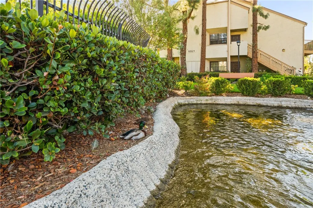 COME ON IN to this stunning, oasis in Garden Grove! This upper-level, corner unit features two bedrooms and two balconies with views of flowing brooks, meandering pathways, and beautifully maintained trees all around! As you step inside, you're welcomed by a roomy living area boasting high ceilings, open floorplan, abundant natural light, a comfortable gas fireplace and a stunning view of the Lakeside Community! As you move in the living room, open the patio doors to listen to the gentle sounds of nearby creeks and streams. Conveniently located on the balcony is a closet that houses the washer and dryer. Just a few steps away, the kitchen awaits, complete with generous dining area with plenty of cabinet space, granite countertops, a stove, a microwave and a breakfast nook. The guest bedroom has plenty of closet space and a hallway bathroom nearby. The spacious primary bedroom featuring a large, walk-in closet. The primary suite also boasts another custom-built closet along with a private vanity and sink, and its adjoining door to the hallway bathroom gives you the convenience of seemingly having two bathrooms. Other fantastic features of this home include central air conditioning, ceiling fans, new carpeting, and a fresh coat of paint throughout. It boasts a newer water heater and a recently acquired dishwasher as well. The Lakeside community is meticulously maintained and gated, featuring two swimming pools, spas and recreational trails behind the community. Nestled amongst lush greenbelts, the area is surrounded by trees, lakes, streams, and convenient sidewalks equipped