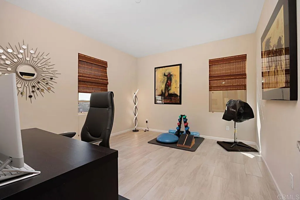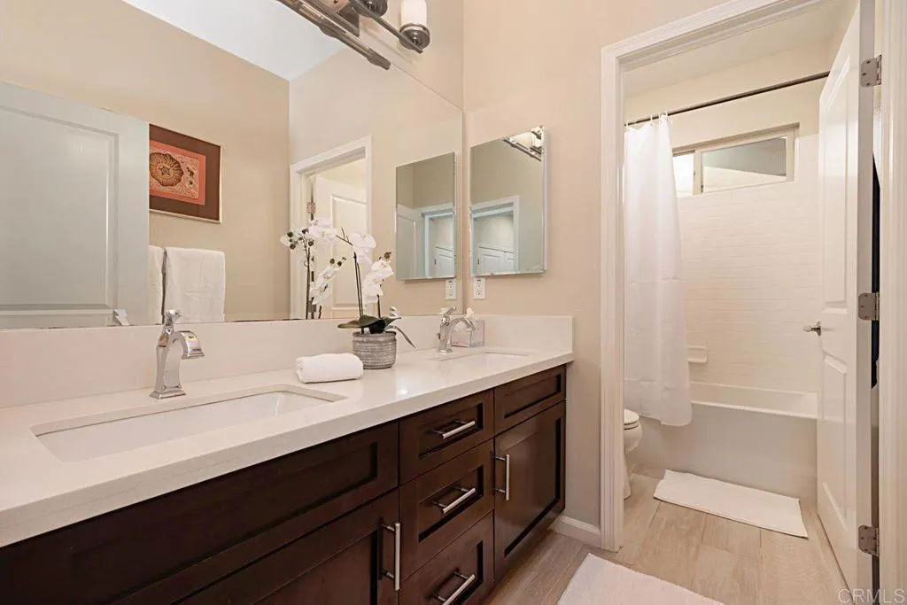 Meticulously maintained and beautifully upgraded, this stunning Sorrento Heights home embodies the essence of modern living. With three bedrooms plus a loft, the flexible floor plan offers options for adding a fourth bedroom. As you enter, note cool porcelain tile floors throughout, neutral paint and finishes, and high ceilings. The heart of the house is the upgraded kitchen, boasting stylish granite countertops, stainless appliances including a gas range, a massive island perfect for gathering, and a large dining area. The spacious primary suite has a walk-in closet and en-suite bath complete with dual sinks in an extra-long vanity with marble counters, separate shower, water closet, and luxurious soaking tub. An additional two bedrooms, large secondary bath, and a flexible loft space round out the upstairs. The loft could be enclosed to create a fourth bedroom or office if desired. Noteworthy features include an oversized upstairs laundry room with built-in shelving, a two-car garage with ample storage, dual-paned windows throughout, wrought iron stair railing, rain gutters, newer water heater, and air conditioning. The backyard is thoughtfully designed with drought-tolerant landscaping, flagstone custom patios, and a covered living area just off the great room for indoor/outdoor living at its finest. With a low HOA of $174/month and no Mello-Roos, the community offers a playground and community viewpoint park. This home is conveniently located for easy access to both the 5 and 805 Freeways, as well as close proximity to the tech corridor of Sorrento Valley for ideal comm