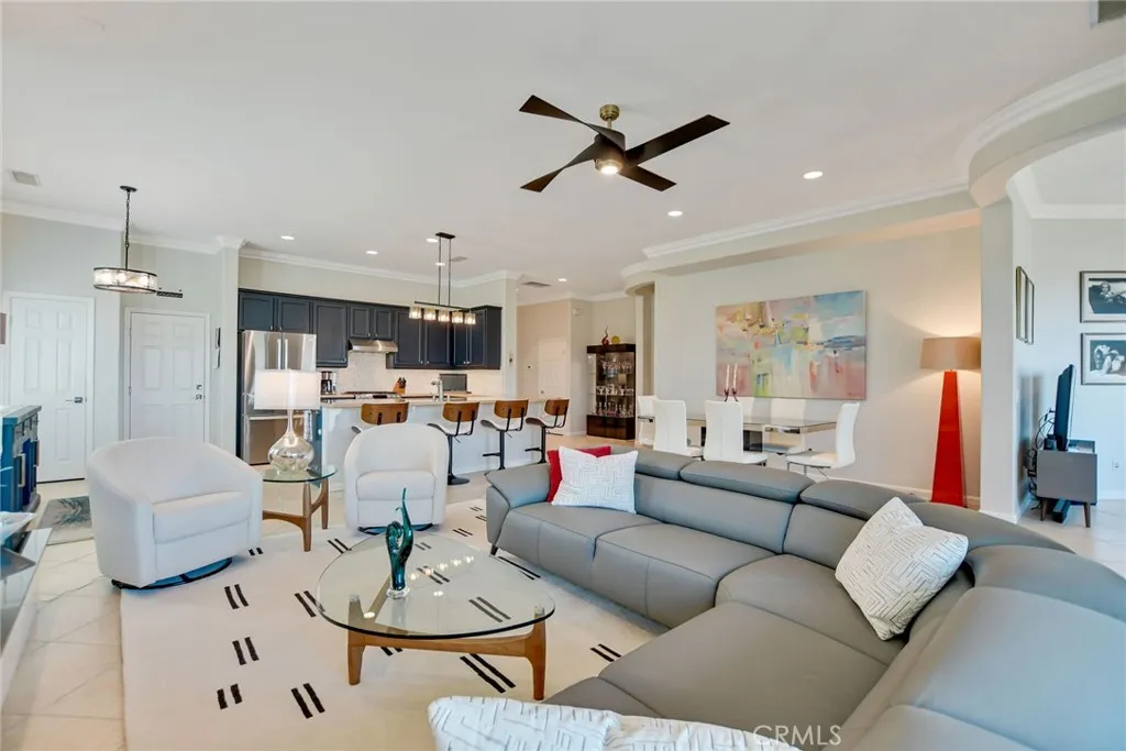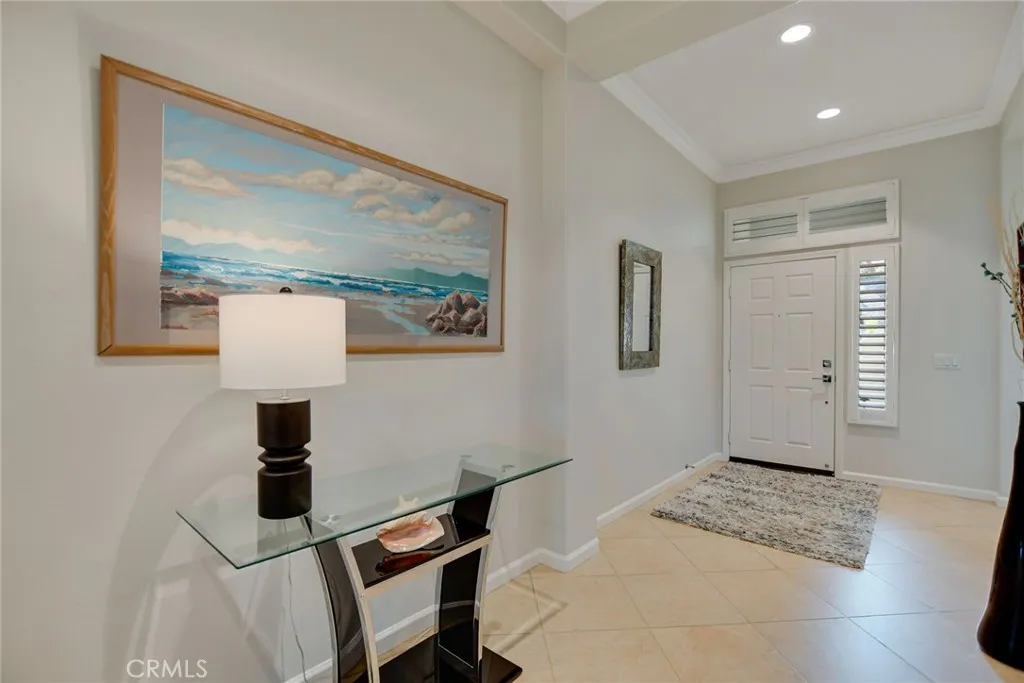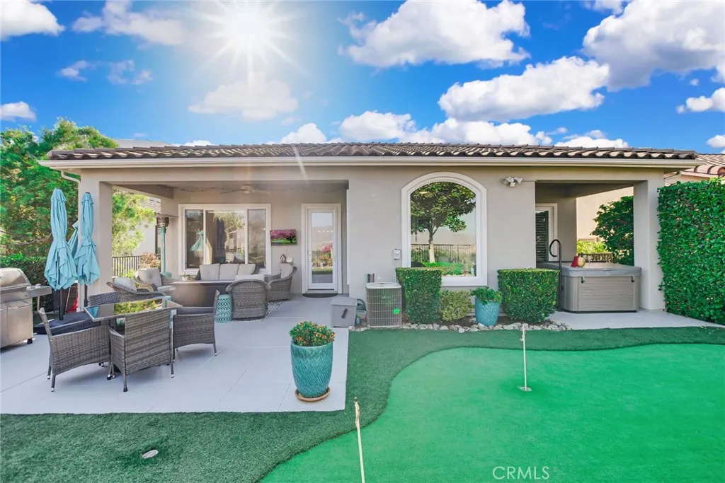 "MILLION-DOLLAR VIEWS WITHOUT THE MILLION DOLLAR PRICE TAG!" Welcome to this beautifully upgraded SINGLE story home (Tenaja Model) in the coveted Trilogy @ Glen Ivy. Glen Ivy is the Inland Empires premier 55+ active adult community, nestled at the base of the Cleveland National Forest and surrounded by the stunning Glen Ivy Golf Course. This home offers resort-style living with breathtaking panoramic mountain views and twinkling night city lights. Step inside to a bright, open-concept layout that radiates elegance and comfort. The heart of the home features a remodeled floor-to-ceiling fireplace, crown molding throughout, and fresh paint inside and out. The expansive gourmet kitchen is a chefs delight with oversized wrapping island, newer 42 cabinets, stainless steel appliances, and modern lighting. Additional luxury touches include: Whole house fan for energy efficiency, Artfully designed ceiling fans, windows are adorned with Plantation shutters for classic charm and sunshades for keeping cool, Beautiful 18 angled tile & engineered wood flooring, Updated modern hardware and finishes, Stylish remodeled bathroom, Versatile Hollywood themed sitting room, Built-in Murphy bed in Bedroom #2 (included!). Step outside and be amazed ... the entertainers backyard boasts a 3-hole putting green, tranquil waterfall pond, five mature fruit and citrus trees, night-time ambient garden lighting, and a brand new heated above-ground spa (yes, it's included!). This outdoor oasis is perfect for enjoying your morning coffee or hosting sunset gatherings while soaking in those incredible views.