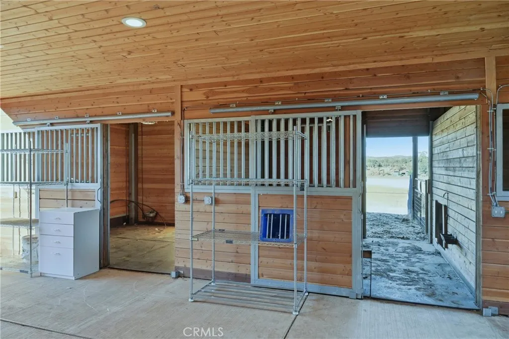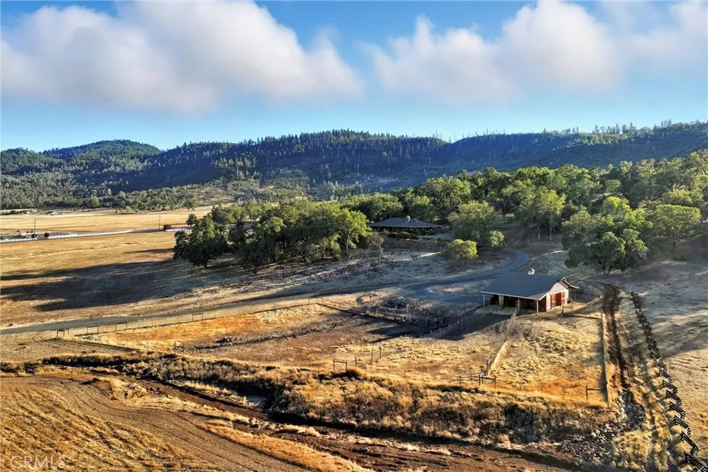 Welcome to this stunning single-level modern stucco home, perfectly situated on 23.57 acres of serene land adorned w/beautiful oak trees & breathtaking meadow views. This exceptional property offers a harmonious blend of contemporary design & natural beauty, creating an ideal sanctuary for relaxation & enjoyment. As you enter, youll be greeted by a spacious open floor plan accentuated by soaring ceilings & elegant heated vinyl plank flooring. The integrated chef's kitchen is a culinary dream, featuring a sleek European-style hood, & an impressive center island w/built-in seating, wireless charging, & a wet sink. The large bar counter, adorned w/stylish pendant lighting. Adjacent to the kitchen, the dining room provides a formal space for meals, showcasing custom lighting & stunning views through slider doors that lead to the expansive private backyard. The luxurious main bedroom suite boasts 10' ceilings, a large slider/picture window door that opens to the side yard, & an exquisite spa-style bath. Enjoy the sunny walk-in custom tile shower, dual sink vanity, & a private toilet room, along with a spacious walk-in closet. Two additional bedrooms are located on the opposite side of the home, each with slider doors. These bedrooms share a hall bath with dual sink areas & a custom tiled tub/shower. The interior laundry center is thoughtfully designed w/a washer, dryer, built-in linen closet, & sink. The property also boasts a 32-panel solar system w/two Tesla Power Wall 3s, providing home backup. Outdoor living is a highlight of this estate, featuring sprawling wrap-around pati