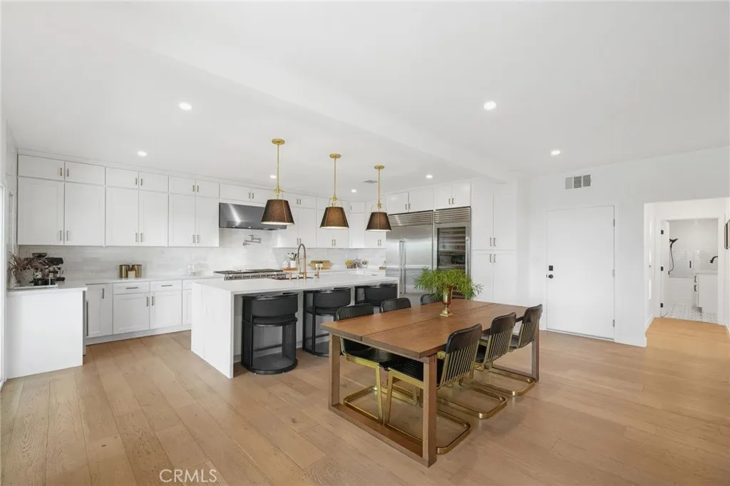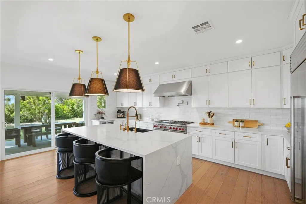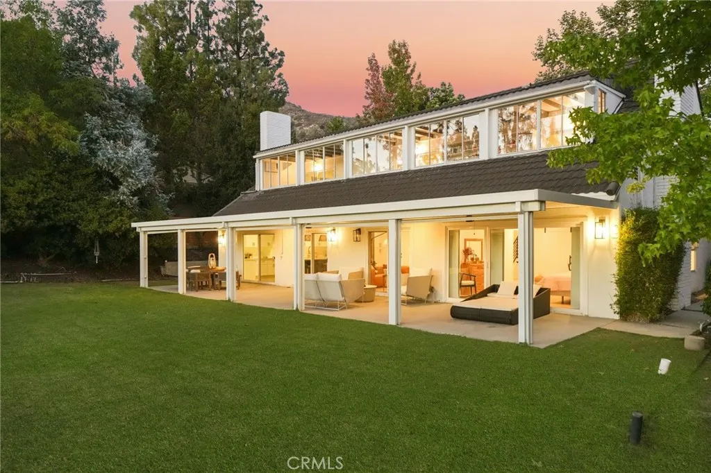 Welcome to an extraordinary sanctuary in the coveted foothills of La Caada Flintridge. This extraordinary home embraces modern sophistication with timeless serenity. This newly reimagined contemporary masterpiece invites you into a world of elegance, light, and breathtaking mountain views. Step through the sun-filled, vaulted entryway and into an open, airy living space framed by walls of glass, where natural beauty becomes an extension of your home. The living and dining areas flow effortlessly together, centered around a sleek fireplace that sets the stage for intimate evenings and stylish gatherings. The designer chefs kitchen is a vision of perfection, anchored by a grand center island with farmhouse sink, dressed in exquisite quartz countertops, radiant subway tiles, and fitted with top-of-the-line wine storage, Sub-Zero and Wolf appliances. Beyond the glass doors, over 600 square feet of covered patio ideal for effortless indoor-outdoor living. Under soft recessed lighting and gentle ceiling fans, savor tranquil mornings or host elegant soires framed by sweeping, unobstructed mountain views. Your retreat continues in the glamorous primary suite that feels like a private haven featuring an entire wall of custom closets with an integrated Samsung AirDresser and a spa-inspired bath designed to indulge your senses, complete with dual vanities and an expansive glass shower. A primary suite that feels like a luxurious hotel spa. Conveniently located downstairs is another bedroom that is perfectly fit for an office. Upstairs you will be met with the perfect floorplan of thre