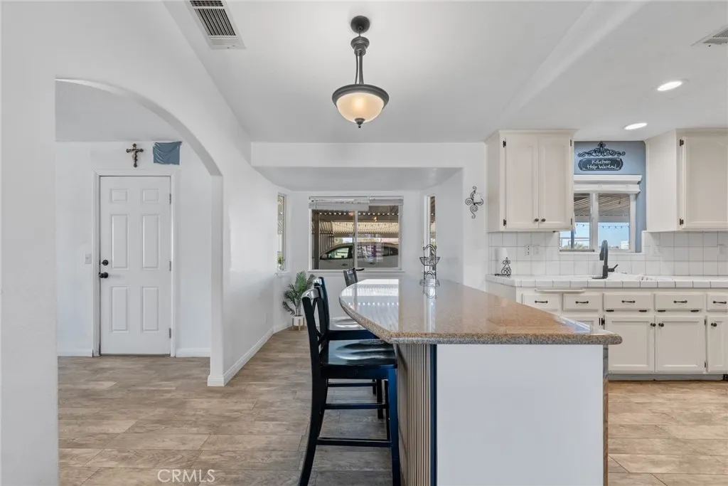 Have you ever wanted to live on a large plot of land, where you'd be granted the unrestricted freedom to do as you please outside, while still being able to enjoy the indoors with an upgraded interior? You've found it, your ideal ranch-style home, keep reading! Inside you've got upgraded flooring with white walls illuminated by both natural light & saucer lights in the ceiling, giving your home a clean, modern look that shines. In the U-shaped kitchen, you'll have plenty of storage capacity and arrangement capabilities with the cabinetry and layout. And what's a ranch without a kitchen island, am I right? Don't worry though, because if the whole family wants to dine, there's a spacious dining room for the Friday night dinners and/or Sunday brunches. Two of the bedrooms are across from each other, ideal for siblings or maybe one can be utilized as a guest room. The master bedroom is a great size but its master bathroom steals its thunder with its upgraded design, elegant shower fixture and double sinks. Before we head outside, you have to check out the two-car garage/ laundry space. It's so unrestricted and, even with the laundry units tucked away, you have so much parking space and/or work space. In the back, you have a deeply shaded concrete patio that runs nearly the equal length of the house. It can be used as a carport or maybe as a stage for the band that you hire for next family gathering that you host. As you look outward, you'll see what I was talking about earlier when I said unrestricted freedom. Aside from the wide opened space, there is also a stone foundation f