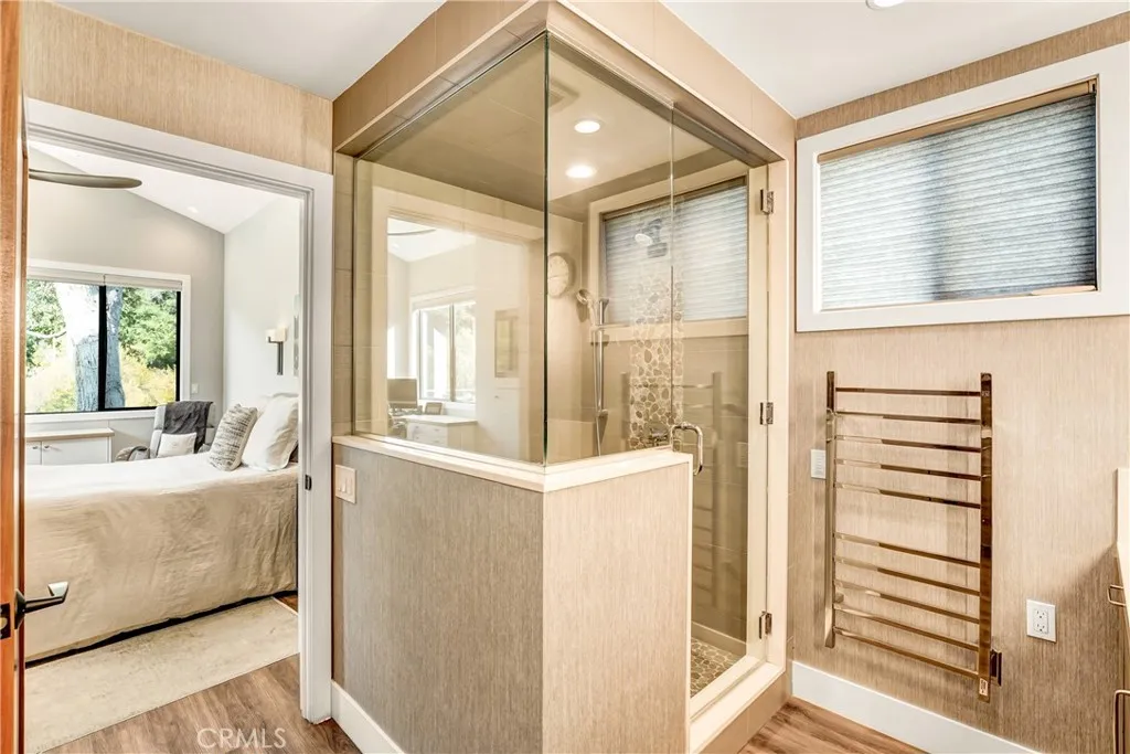 NEW CUSTOM BUILD IN 2019***ENERGY INDEPENDENCE NEAR ZERO ELECTRIC BILLS***BACK UP POWER WALLS=NO BLACKOUTS***OWNED SOLAR***OPEN CONCEPT***INDOOR/OUTDOOR CREEKSIDE LIVING***3 EN SUITE BEDROOMS, PLUS POWDER ROOM***SURROUNDED BY BOUNTIFUL NATURE***EV CHARGING***TWO TANKLESS WATER HEATERS***LOW MAINTENANCE LANDSCAPING***BUILT FOR FIRE SAFETY*** Tucked within this gated Westlake Village community, this single-level modern retreat blends luxury, sustainability, and effortless indoor-outdoor living. Powered by owned solar panels and dual Powerwalls, with EV charging and near-zero energy costs, this home delivers year-round comfort, performance, and peace of mind. Built from the ground up in 2019, the 3-bedroom, 3.5-bath home features three ensuite bedrooms, soaring ceilings, intentional design, and expansive Fleetwood glass doors that open to a creekside deck with fire pit, outdoor TV, and private spa. This is the ultimate setting for relaxation or entertaining beneath the trees. The chefs kitchen anchors the home with a 12-foot island, Thermador appliances, and a butlers pantry, while two elegant primary suites offer custom walk-in closets and spa-style baths. Residents of this desirable community enjoy resort-style amenities including a pool, gym, game room, and clubhouse, all with low HOA dues that even cover internet and cable. Surrounded by nature yet minutes from shops, restaurants, pickle ball, tennis, golf and hiking trails, this nature sanctuary captures the best of luxury living - private, polished, and perfectly turn-key.