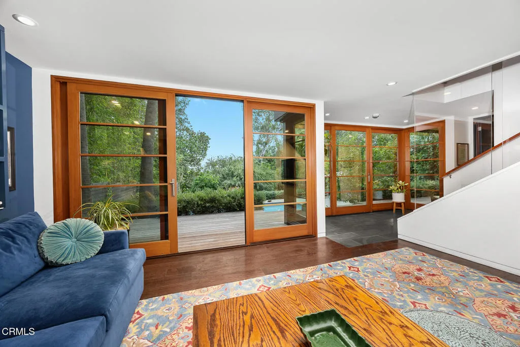 Nestled on a prestigious tree-lined street among distinguished estate properties & historic homes, this completely reimagined & expanded residence seamlessly blends contemporary sophistication w/ natural beauty. What was once a modest ranch style home has been transformed into a light-filled modern sanctuary through a comprehensive remodel that added an entire lower level, newly built garage, & new systems throughout. Enter through the formal foyer w/ gleaming hardwood floors into an open-concept living space where architecture & nature converge. The gourmet kitchen features sleek quartz countertops, GE Monogram cafe-style appliances, large island w/ gas cooktop & counter seating, hot/cold filtered water system, & decorative fireplace. The space flows effortlessly into the dining area & opens onto a private balcony overlooking the stunning grounds below. The sun-drenched living room features custom built-in bookshelves. The entry level offers three well-appointed bedrooms, including one w/ its own private bathroom, while the 2 additional bedrooms share a beautiful full guest bathroom. Each bedroom enjoys French door access to private patios or balconies. Descend to your personal sanctuary, where wide plank oak engineered flooring anchors the luxurious primary suite. Complete w/ a generous 150 sq ft closet, the spa-inspired primary bath features radiant floor heating, separate shower, private toilet room, double vanity & soaking tub--all framed by floor-to-ceiling glass doors opening directly onto your private rear deck. Adjacent to the primary suite, an expansive great room