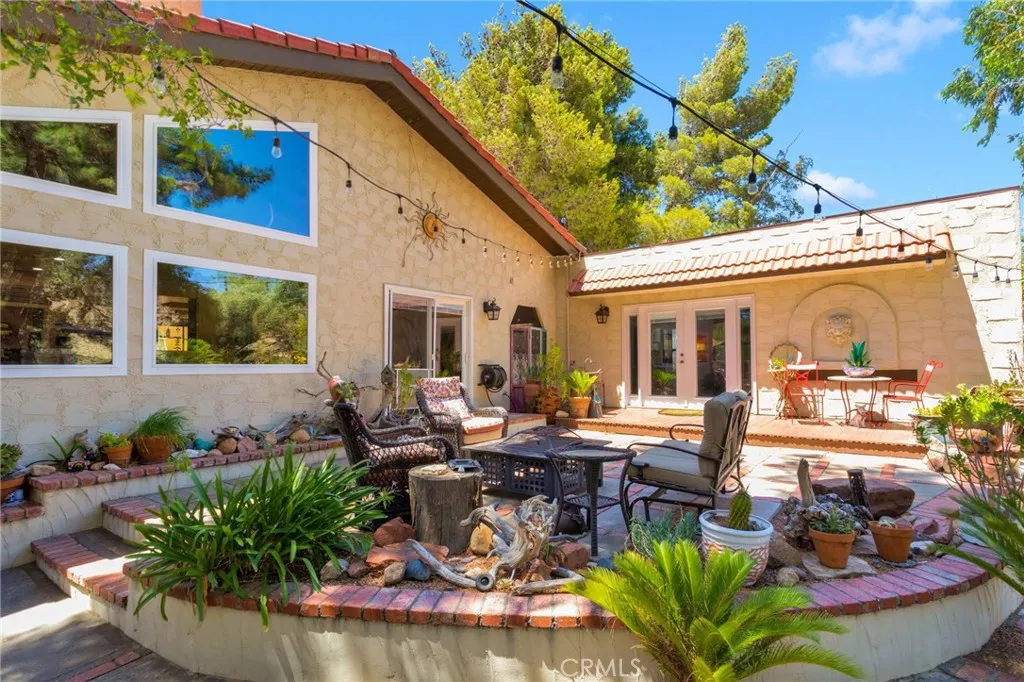 Truly One-of-a-Kind Spanish-Style Estate on Over 4 Acres with Guest Suite & Astounding Views! Experience rustic elegance and exceptional versatility in this beautifully upgraded 4 bedrooms, 3 baths custom home with nearly 3,000 sq ft of living space on over 4 acres. This Spanish-style estate is perfectly suited for multi-generational living, entertaining, or those seeking a self-sustaining lifestyle with comfort and charm throughout. The showstopper here is the expansive family room with its cathedral beamed ceiling, massive picture windows, wood burning stove with brick accent built in seating as well as a wet bar area. The remodeled kitchen features rough-edge granite countertops, a hammered copper farmhouse sink, stacked stone backsplash, Bosch double oven, and under cabinet lighting. The formal dining area sits fine beneath the loft area and is framed with beautiful carved wood. With details such as the Knotty pine solid wood doors, multiple skylights, plantation shutters, and French doors throughout, this property exudes timeless warmth and style. The expansive game room offers its own HVAC system and a built-in safe. A separate mother-in-law suite provides privacy for guests or extended family. The laundry room includes a utility sink, built-in drying racks, and a beautiful custom wood and glass door. Another unique room to note is the cigar room just off of one of the bedrooms. Outside, enjoy a grapevine-covered pergola, a deck with outdoor kitchen, sparkling 9-ft deep pool, and so many secret garden sitting areas. Additional features include a detached flex space co