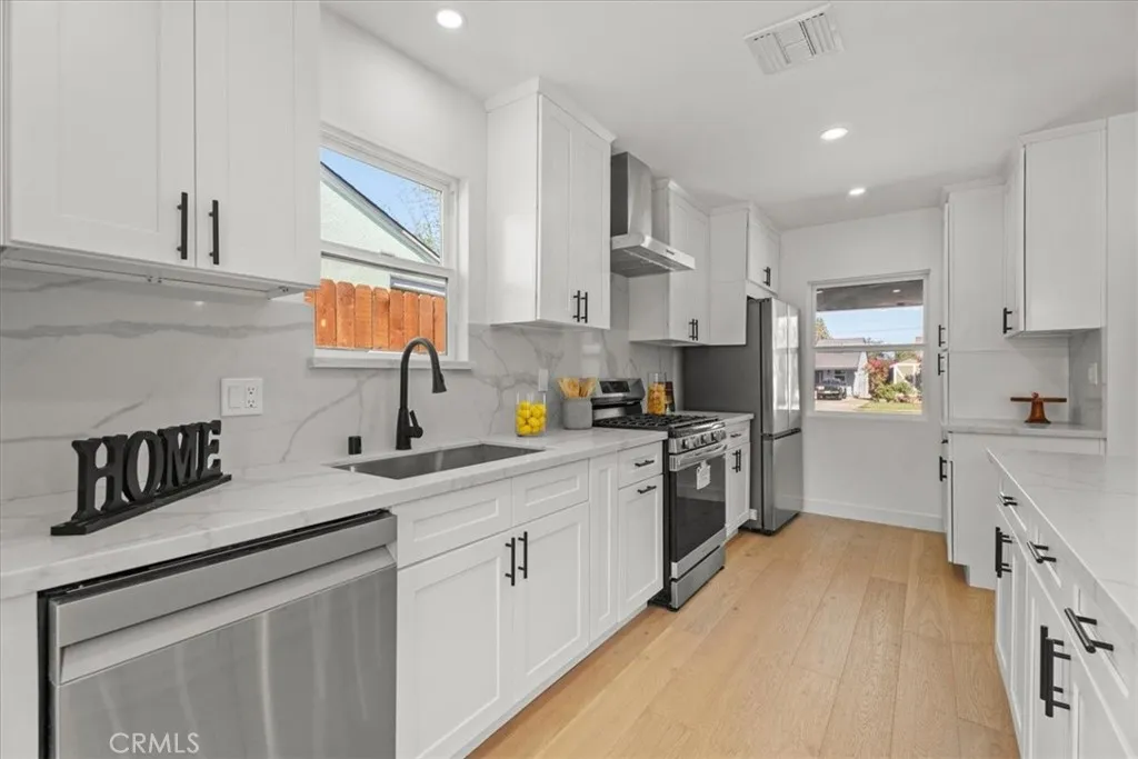 Situated on a tranquil street in the heart of Sherman Oaks, this impeccably remodeled residence features 3 bedrooms and 2.5 bathrooms, along with a beautifully appointed 1-bedroom, 1-bathroom ADU. Offering a combined 2,028 square feet of thoughtfully designed living space, the home seamlessly blends modern elegance with everyday comfort. Ideally located just moments from the highly sought-after Kester Elementary School, this property presents an exceptional opportunity in one of the Valleys most desirable neighborhoods. Inside, youre welcomed by an open layout that feels both fresh and inviting. Clean lines, warm tones, and stylish finishes give the home a comfortable and modern feel. The kitchen is a true showstopper, centered around a large island thats perfect for cooking, gathering with friends, or casual family meals. It opens right into the main living area, creating a space thats great for entertaining or just kicking back and relaxing. Step through the sliding glass doors and youll find a generous backyard with a big grassy area, ideal for outdoor get-togethers, kids at play, or winding down after a long day. Theres even plenty of space to add a pool without taking away from the yards functionality. The newly built primary suite, approximately 500 square feet, feels like its own private retreat. It features an oversized shower with beautiful tilework, a dual-sink vanity, and a spacious walk-in closet. The other bathrooms are just as polished, with modern vanities and sleek fixtures throughout. The detached 400-square-foot ADU is the perfect bonus. Whether you use it