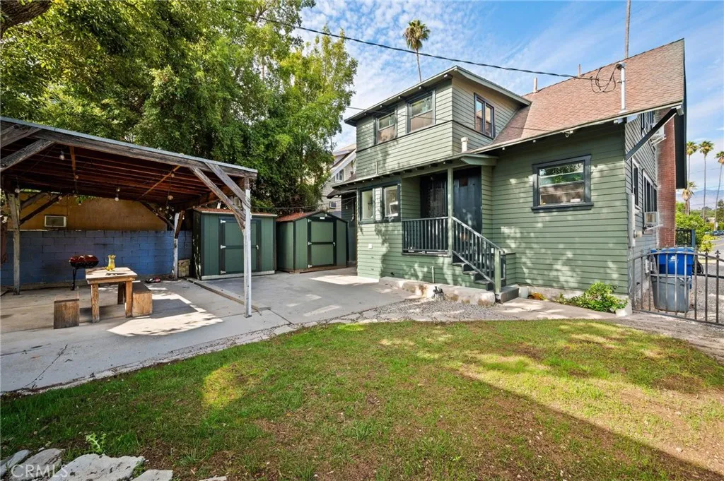 Welcome to 6450 York Blvd, Highland Park a beautifully preserved two-story home blending timeless character with thoughtful updates. Elevated above the street, the front deck with swing chair overlooks a lush lawn and fruit trees, creating an inviting first impression. Inside, original hardwood floors, vintage details, and modern touches complement a flexible layout featuring four spacious bedrooms plus a fifth bonus room ideal for an office or guest space. The upstairs bath showcases a classic clawfoot tub with period-style fixtures, while the downstairs suite with adjoining full bath offers privacy for guests or extended family. A convenient quarter bath near the kitchen adds everyday functionality. The bright dining area opens to a welcoming living room, perfect for gatherings, while the kitchens butcher block counters and antique stove bring warmth and charm. Outside, enjoy a private backyard with a covered pergolaideal for relaxing or entertainingand two large Tuff Sheds for extra storage or creative use. The home also features newer DUAL - PANE WINDOWS, UPDATED ELECTRICAL PANEL, ATTIC INSULATION, UPGRADED COPPER PLUMBING AND NEWER WATER HEATER offering peace of mind alongside its classic charm. This home captures the best of Highland Park living: historic character, modern comfort, and a setting that feels truly special.