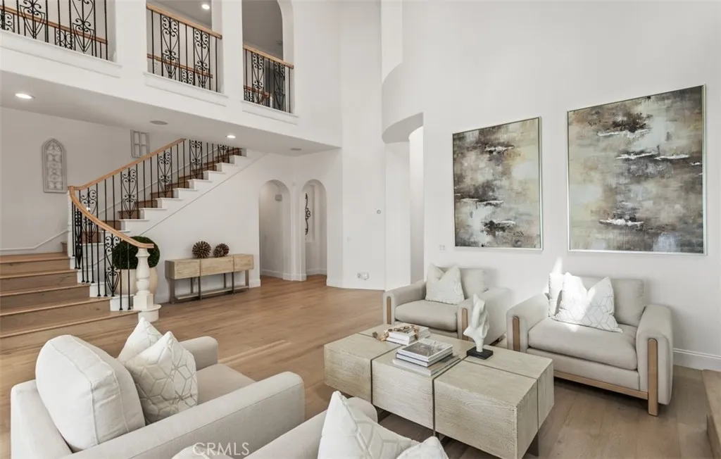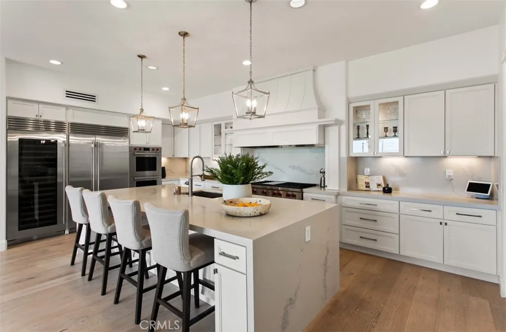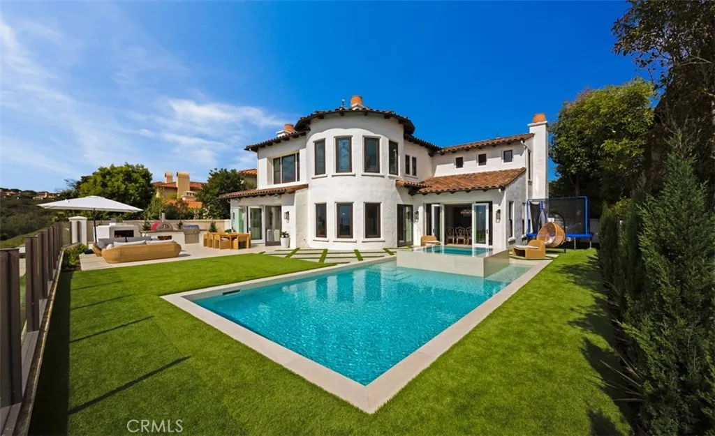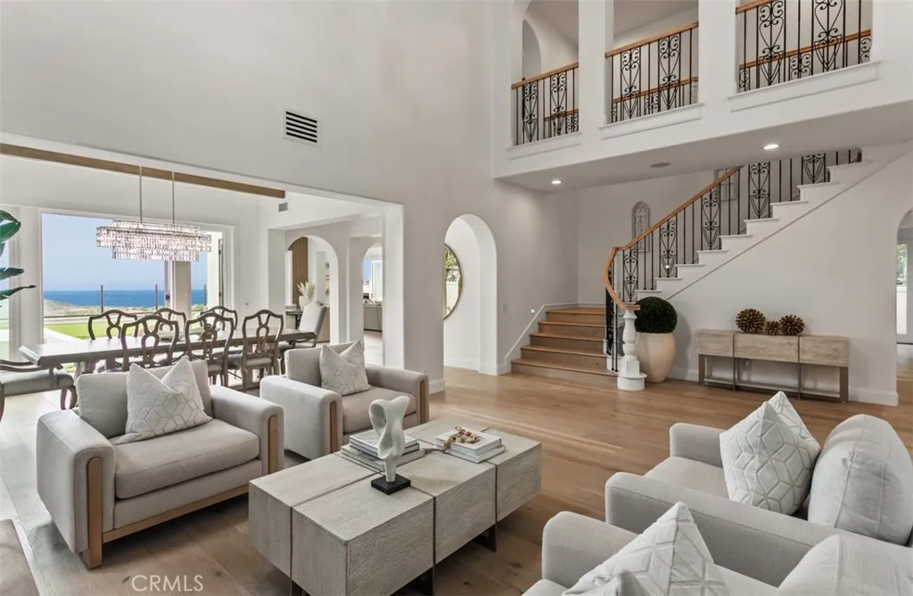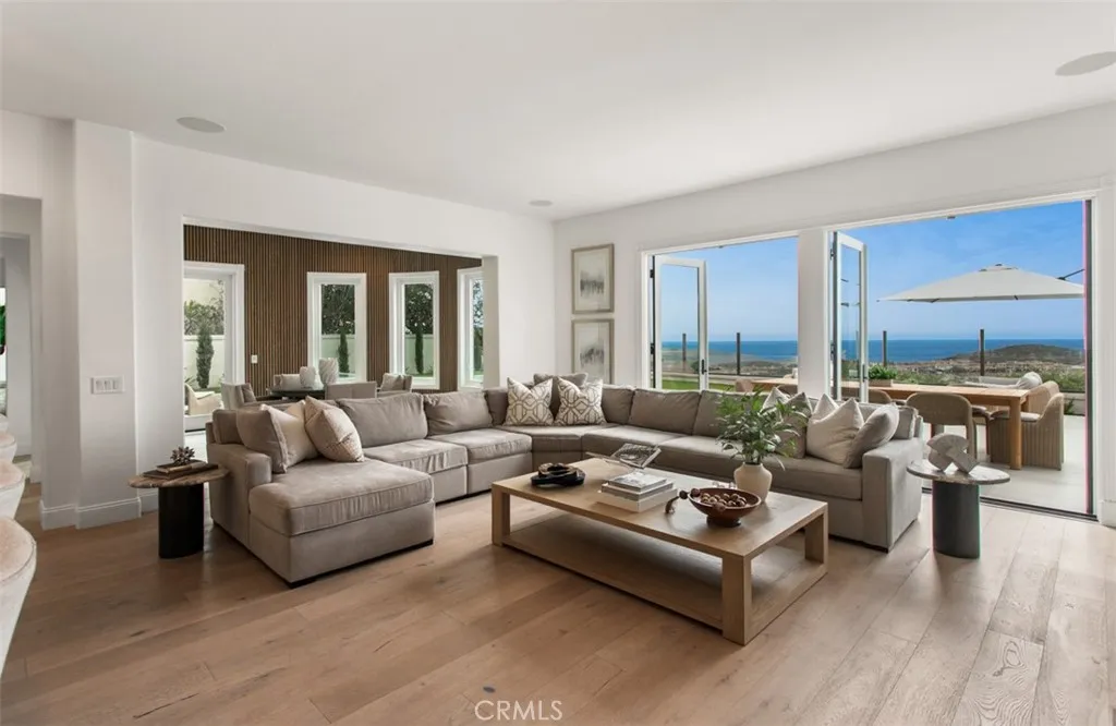 Showcasing panoramic views of the Pacific Ocean and the rolling hills of Newport Coast, this recently renovated former model home offers 4-bedrooms and 4.5-baths in the guard-gated enclave of Coastal Canyon, displaying the rare combination of an expansive ~8,751 sq. ft. lot in one of the most coveted locations in Coastal Canyon - without rooftops in its immediate view line. Every detail of the homes thoughtful transformation highlights both its extraordinary setting and modern coastal elegance. Spanning ~4,022 sq. ft., the interiors are filled with natural light and elevated by wide-plank wood flooring, custom finishes, and walls of windows framing endless horizons. The chef-inspired kitchen has been fully reimagined with a 12-foot quartz island, custom cabinetry, and professional-grade appliances including SubZero refrigeration, Wolf range and ovens, Miele coffee system, and dual Bosch dishwashers. A formal living with soaring ceilings, dining room, morning room, and a main-floor en-suite bedroom create an ideal flow for both everyday living and entertaining. Upstairs, the primary suite is a serene retreat with breathtaking ocean vistas, a fireplace, a bespoke walk-in closet, and a spa-like bath featuring a freestanding tub and designer tile. Secondary bedrooms and bathrooms continue the theme of quality and style, all recently refreshed to reflect modern design. Outdoors, the refreshed grounds have been transformed into a private resort. A sparkling pebble-finish pool with infinity-edge spa seemingly spills into the horizon, complemented by porcelain-tiled patios, lush tu