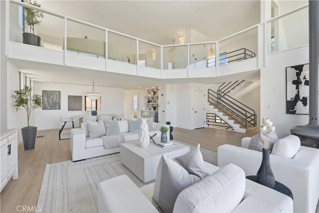 6824 E. Ocean is more than a residence-its a statement of lifestyle & elegance. Set on the prestigious Peninsula, this contemporary estate embodies modern architecture & the timeless allure of coastal living. Perfectly positioned, it showcases sweeping views of the ocean, bay, mountains, & beyond. Every detail reflects sophistication, offering not just a home, but an unparalleled experience. Set across 4 levels, this estate has been completely reimagined with designer upgrades & finishes. The 1st level, with direct entry from the 4-car garage, includes a spacious bedroom, a fully remodeled bath, & a generous great room with kitchenette-ideal for guests, a family lounge, or secondary living quarters. The main living & entertaining level is designed to capture the surrounding beauty. Floor-to-ceiling windows fill the fireside living room with natural light, while a balcony frames bay views. The dining area features a custom dry bar w/wine fridge, & the gourmet kitchen is a showpiece w/ a suite of sleek new Caf appliances, new quartz countertops, and new refaced cabinets. A 2nd balcony brings in ocean breezes, and a spiral staircase provides convenient access to the 3rd level. The 2nd level also offers a bedroom, complete with new bath. The primary retreat encompasses the entire 3rd level-a serene sanctuary with bay views, versatile office space, conversation room, laundry nook, & new spa-like bath with dual vanities, designer fixtures, soaking tub beneath a statement chandelier, an oversized walk-in shower, and walk-in closet. The show stopping 4th floor roof top deck is an o