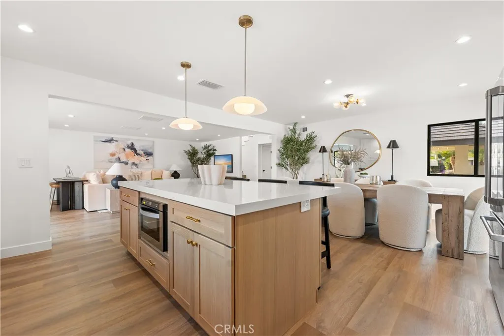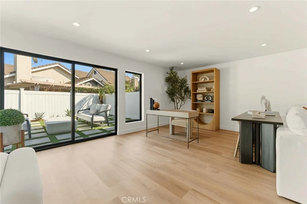 Welcome to your dream home in the heart of South Coast Metro! This stunning, fully remodeled residence in the highly sought-after Award Estates neighborhood offers 6 spacious bedrooms, 3.5 bathrooms, and approximately 2,844 square feet of luxurious living space. Designed for both comfort and style, this move-in-ready home has been upgraded with hundreds of thousands of dollars in premium improvements. Step into a beautifully updated interior featuring central air conditioning, gleaming LVP and tile flooring, and energy-efficient dual-pane windows. The chef-inspired kitchen is the centerpiece of the home, boasting quartz countertops, designer backsplash, shaker-style cabinetry, and professional-grade stainless steel appliances. The open-concept design flows seamlessly into a spacious family room, perfect for entertaining or relaxing with loved ones. The expansive primary suite is a true retreat, offering a walk-in closet and a spa-like bathroom with a large walk-in shower and quartz-topped dual vanities. All secondary bedrooms are generously sized, and each bathroom has been meticulously remodeled with modern finishes. A convenient powder room is located on the main level, along with formal living and dining areas ideal for hosting guests. Outside, enjoy a tranquil backyard oasis complete with a paver stone decking and drought-tolerantlandscapingperfect for year-round entertaining. The home also features a finished two-car garageand a private gated courtyard that leads to a dramatic entryway, complete with a skylight, and an elegant black iron staircase. Located in a quiet,