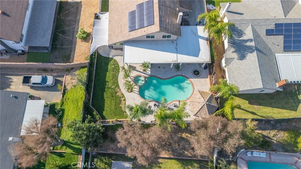 Welcome to this beautifully upgraded home in the heart of Corona, where modern comfort meets elegant design. Every inch of this property has been thoughtfully enhanced with top-quality finishes and energy-efficient systems for a true move-in ready experience. Step inside to find a completely remodeled interior featuring new central air conditioning, central heating, and air ducting throughout, ensuring year-round comfort. The remodeled kitchen is a chefs dream with new cabinets, KitchenAid appliances including a triple oven, farm sink, pot filler, stove, ventilator, and kitchen window. Elegant ceramic and porcelain flooring, crown molding, and remote-controlled blackout shades elevate every room. The cozy den features a remodeled gas/wood fireplace and double French doors that open to the expansive backyard retreat. The remodeled den bathroom includes a new sink and toilet, while the converted office or 5th bedroom offers modern functionality with USB/C charging outlets, new internet and phone hookups, mini split AC/heater, and separate outdoor entryperfect for remote work or guests. Upstairs, the primary suite is a true sanctuary with a fully remodeled bathroom featuring Italian marble floors, a luxury waterfall shower system with multiple jets, double sinks, illuminated fog-resistant mirrors, and bidet toilet. This home is equipped with a whole-house water filtration system with reverse osmosis and alkaline drinking water, providing clean, refreshing water throughout. Outdoor living is unmatched with a new double-insulated aluminum wraparound patio (24x24 + 15x36) complet