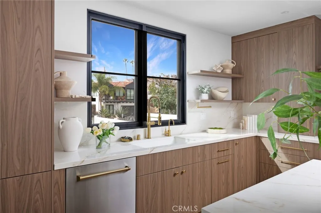 Welcome to 33852 Silver Lantern, a pristine, newer build ocean and sunset view home nestled in the heart of Dana Point's Lantern District. Enjoy watching the sweeping white water ocean view's from the deck and ocean views from the family room, this residence is an idyllic haven for families, investors, and young professionals alike. Spread over a generous 2,351 sq. ft. of refined interior space, this timeless European Modern-designed home boasts 3 well-appointed bedrooms and 3 luxurious designed bathrooms, ensuring ample privacy and comfort. The property's allure is further enhanced by 1,905 sq. ft. of exterior living areas, including a spacious 750 sq. ft. front deck, a 435 sq. ft. balcony off the kitchen for alfresco dining, and a breathtaking 700 sq. ft. rooftop deck that offers a sweeping ocean view backdrop. The home's interior is a symphony of organic elegance and modern sophistication, featuring Calacatta Oro marble countertops, custom walnut built-ins, and white oak wood flooring with intricate herringbone detail throughout. A show-stopping book-matched fireplace acts as a central focal point, while the finest Kohler brass and Signature Hardware fixtures, along with Top Knobs brass hardware, add a touch of opulence to every corner. Heated floors in the primary bathroom and High end Sonance invisible speakers through this home. Practicality is not forgotten, with a whole-house filtered water system, high end stainless steel appliances, and an LG front-load washer and dryer located in a separate laundry room catering to your every need. The property also includes a ov