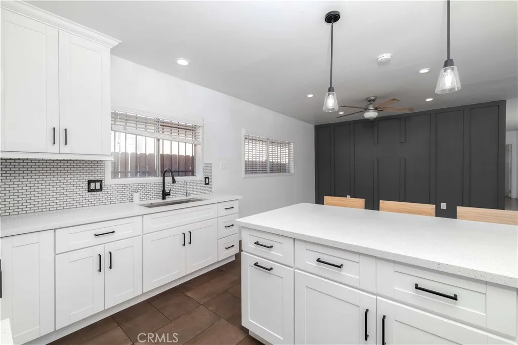 Welcome to 2432 E 112th Pl, a traditional Los Angeles bungalow that has been completely reimagined for modern comfort without losing its soul. A new roof sits overhead and new paint inside and out makes the whole home feel fresh, crisp, and move-in ready. Natural light filters through newly screened windows, bouncing off the quartz countertops and bright white shaker cabinets in the kitchen. The large island, accented with pendant lighting overhead, centers the space and invites you to gather. Its a kitchen designed for real life finished with an under-mount stainless steel sink, subway tile backsplash, and updated black hardware that brings contrast and clarity. The living room is layered with warmth and style, anchored by an accent wall and large-format tile that flows into the hallway, adding scale and style. Recessed lighting and window treatments throughout the home give every room a polished touch. Both bathrooms have been thoughtfully remodeled with the guest bath featuring an oversized stand up glass shower and new vanity. The primary suite offers a walk in closet and a spa-like ensuite with a soaking tub and dramatic floor to ceiling tile bringing a true sense of retreat to the space. A new water heater ensures energy efficiency. Each bedroom is finished with vinyl flooring and ceiling fans for year-round comfort, while outside, the decomposed granite side yard adds low-maintenance charm. The gated driveway offers covered parking for up to six cars ideal for hosting, growing households, or simply having space to spare. With close proximity to the 105 freeway and th