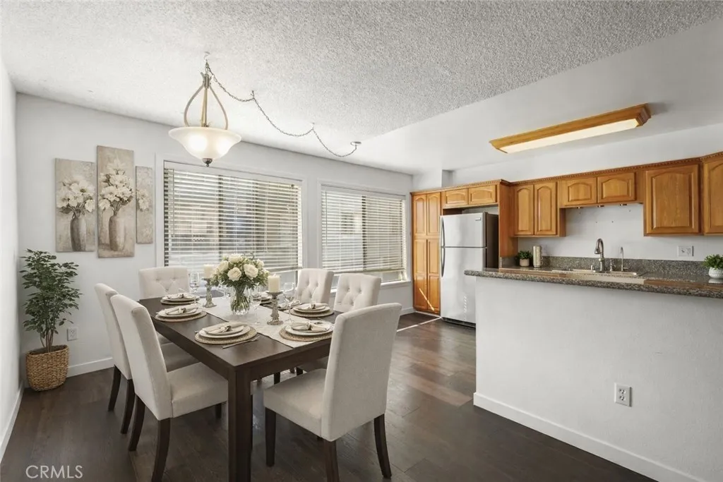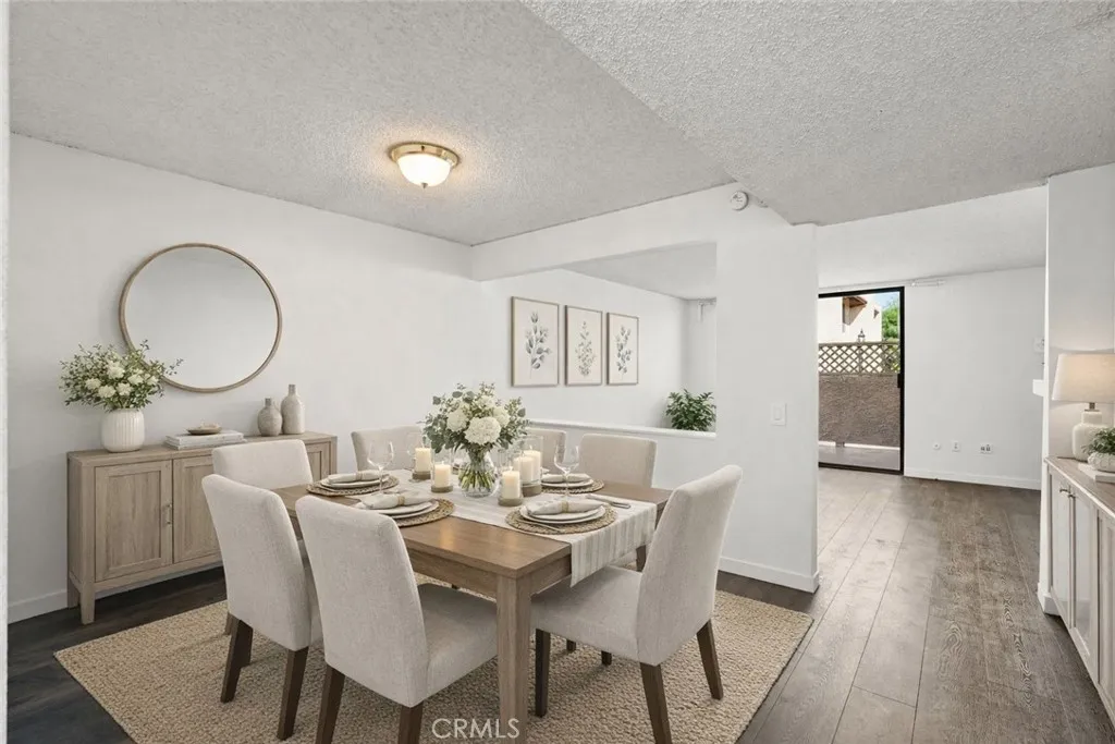 Welcome to this spacious two-story condo in the heart of Woodland Hills. With a practical layout and new vinyl flooring throughout, this home offers comfort, functionality, and room to make it your own. The main level features two separate dining areas, a generously sized kitchen with ample counter space and modern appliances, and a cozy living room with a fireplace perfect for relaxing evenings at home. Just off the living area, sliding glass doors open to a private enclosed patio, ideal for enjoying your morning coffee, entertaining guests, or getting some fresh air. Upstairs, youll find two well-sized bedrooms, each with its own walk-in closet. One bedroom includes an ensuite bathroom, offering privacy and convenience. The laundry area is tucked into a hallway closet with hookups for a side-by-side washer and dryer. Additional highlights include central air and heat, and two assigned parking spots in a gated garage. The community features a pool, spa, and landscaped courtyards, all within a secure and well-maintained complex. Conveniently located near Warner Center, Westfield Topanga, The Village, restaurants, cafes, and with easy access to the 101 and 118 freeways this condo offers space, comfort, and a great Woodland Hills location.