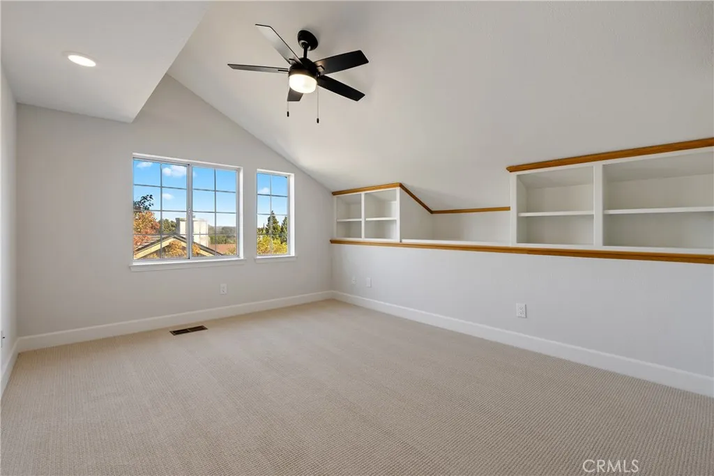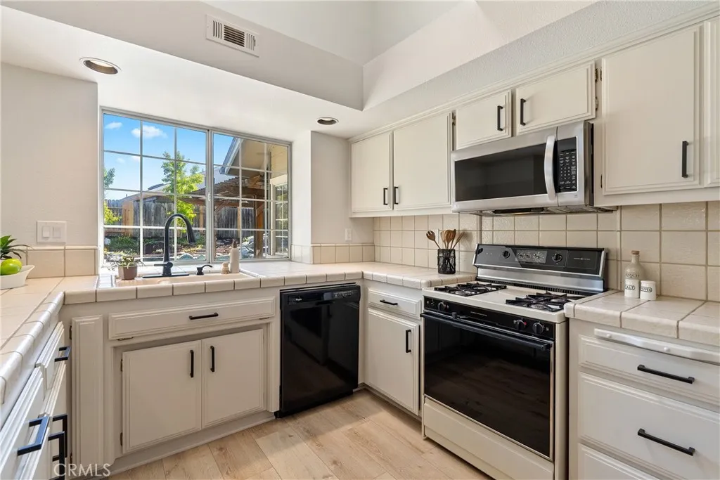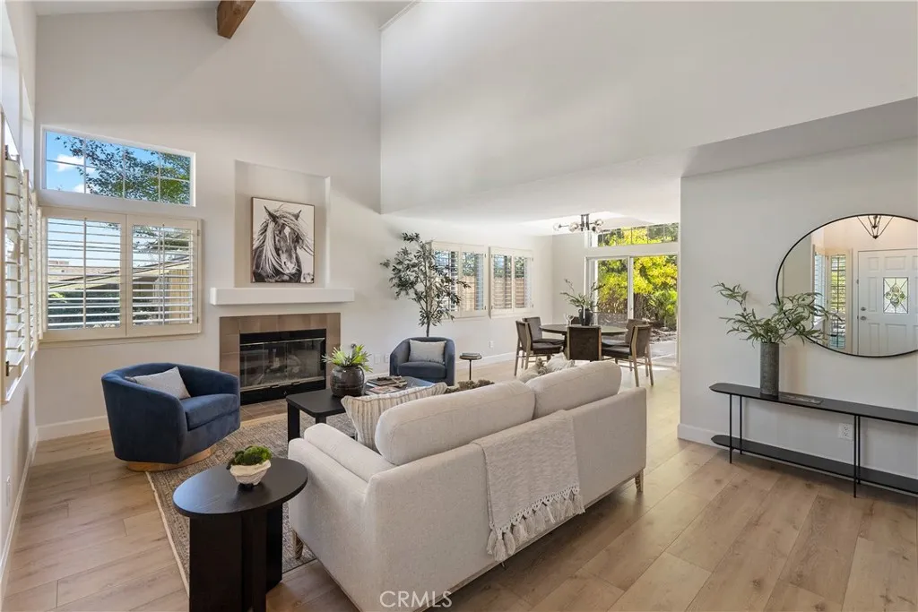 Welcome to this stunning Paso Robles residence that perfectly resonates with todays modern lifestyle, located just minutes from the iconic historic downtown district. This move-in ready property combines chic sophistication with comfort, showcasing recent upgrades such as luxury vinyl flooring, designer-selected interior paint with a timeless palette, updated baseboards, deluxe carpeting, ceiling fans, water-saving faucets, and stylish light fixtures, adding a serene and tranquil atmosphere throughout the home. Opulent details include plantation shutters, tray ceilings in the kitchen and dining areas, custom built-ins, and recessed lighting. The vaulted ceilings and exposed beams provide an airy ambiance, complimented by the versatile and open floor plan. The flexible layout offers two bedrooms and a full bath on the main level - one of which is attached to the bathroom and as such offers an ensuite layout - and two additional bedrooms plus two full baths upstairs. The upstairs primary suite features a double vanity, walk-in closet, and high ceilings. The spacious great room, centered around a welcoming fireplace, flows easily into the kitchen and backyardperfect for everyday living, dining and entertaining. The bright, well-appointed kitchen provides generous counter and cabinet space, a breakfast bar, gas range, dishwasher, built-in microwave, refrigerator, and wine storage. Upstairs, a comfortable family room loft, with a second fireplace, sets the scene for movie or game nights. Designed for effortless indoor-outdoor living, the property features a charming front terrac