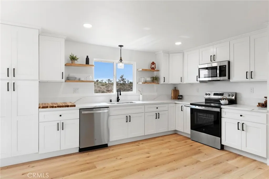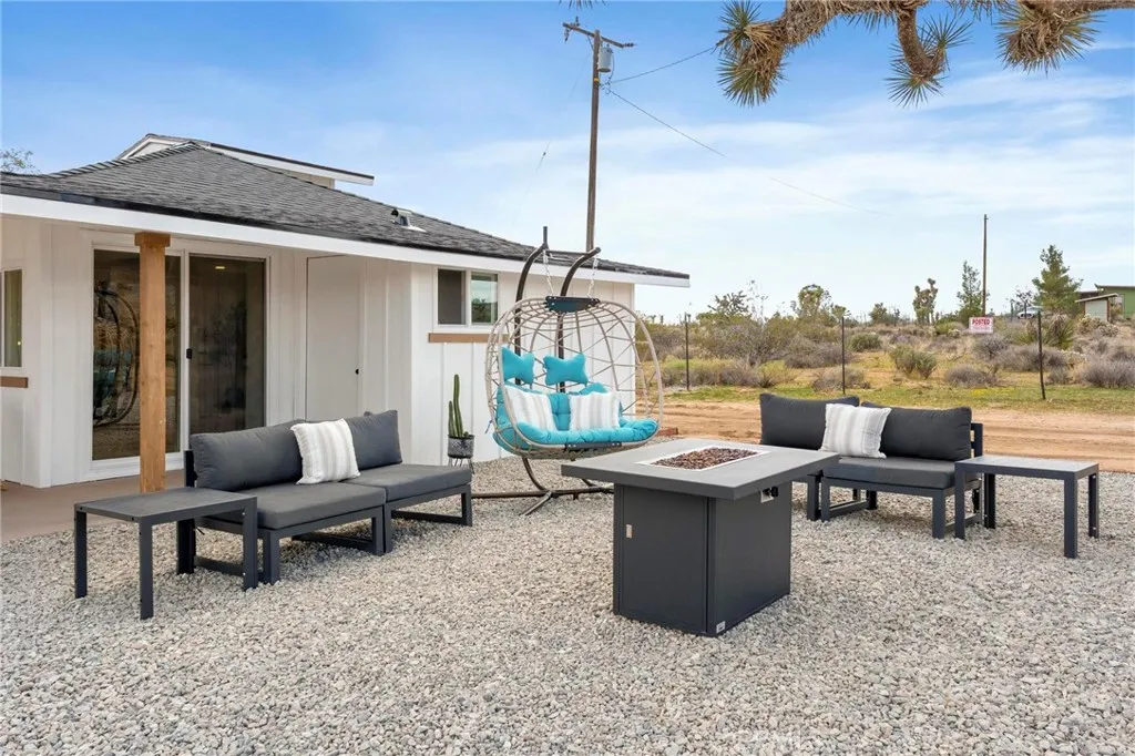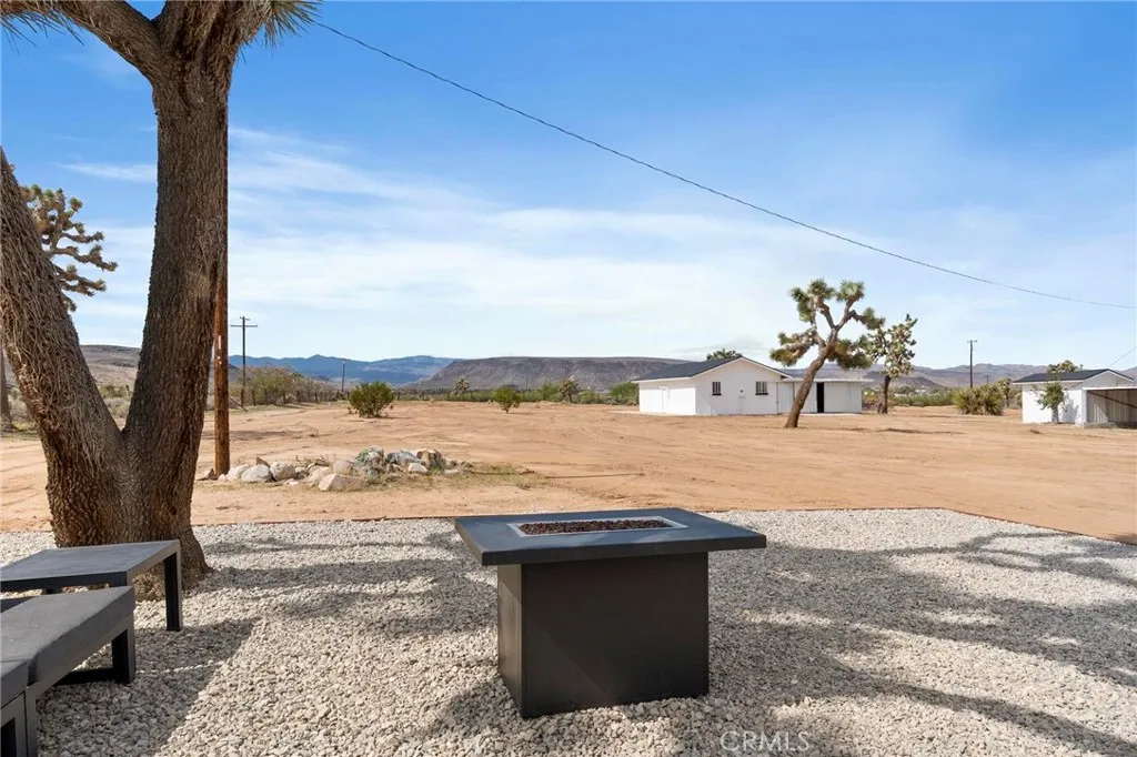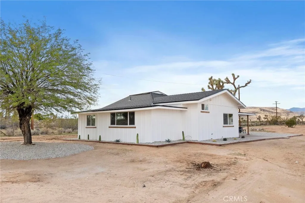 Welcome to 3398 Condalia Ave, a fully remodeled 3 Bed 2 Bath desert oasis on 3.65 acres of pristine, fully fenced land surrounded by beautiful Joshua trees and breathtaking mesa and sunset views. Located in the peaceful New Horizons area, this property offers the perfect blend of modern living and serene desert charm. Inside, every inch has been redone from the ground up featuring a brand-new kitchen, bathrooms, drywall, electrical, plumbing, HVAC, flooring, and roof. The bright and open layout includes 3 bedrooms and 2 bathrooms totaling approximately 1,458 sq. ft. of turn-key living space. Youll also find a separate laundry room and a large covered patio perfect for relaxing and taking in the Sand-to-Snow, Black Lava Butte, and Flat Top Mesa views. The propertys huge 6-car garage/workshop, plus two additional storage/workshop units, provide endless space for projects, equipment, or creative pursuits. The graveled garden and open land are ideal for gatherings or future landscaping ideas. A private well sits on the property, while the home is conveniently connected to city water. Zoned for Rural Living (RL), this property allows up to nine animals or horses making it perfect for those seeking space, freedom, and possibility. With beautiful Joshua Tree National Park just 15 minutes away, Palm Springs 45 minutes, and Twentynine Palms Marine Base 40 minutes, this home offers the best of desert living with easy access to everything. Whether youre looking for a peaceful full-time home, weekend getaway, or short-term rental investment, this stunning property delivers comfort, p