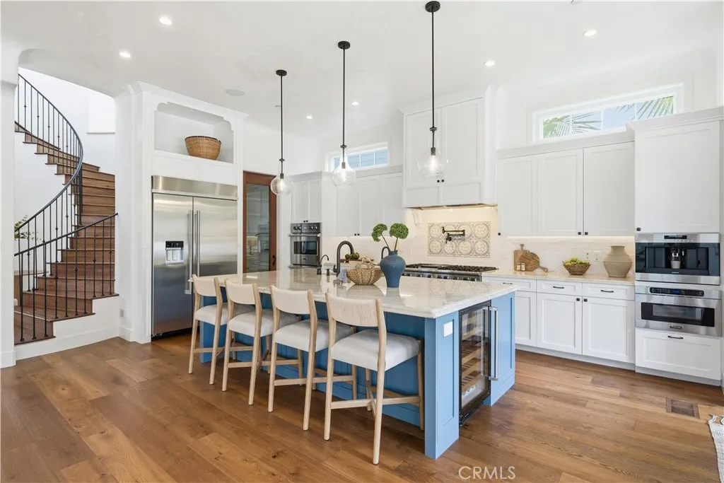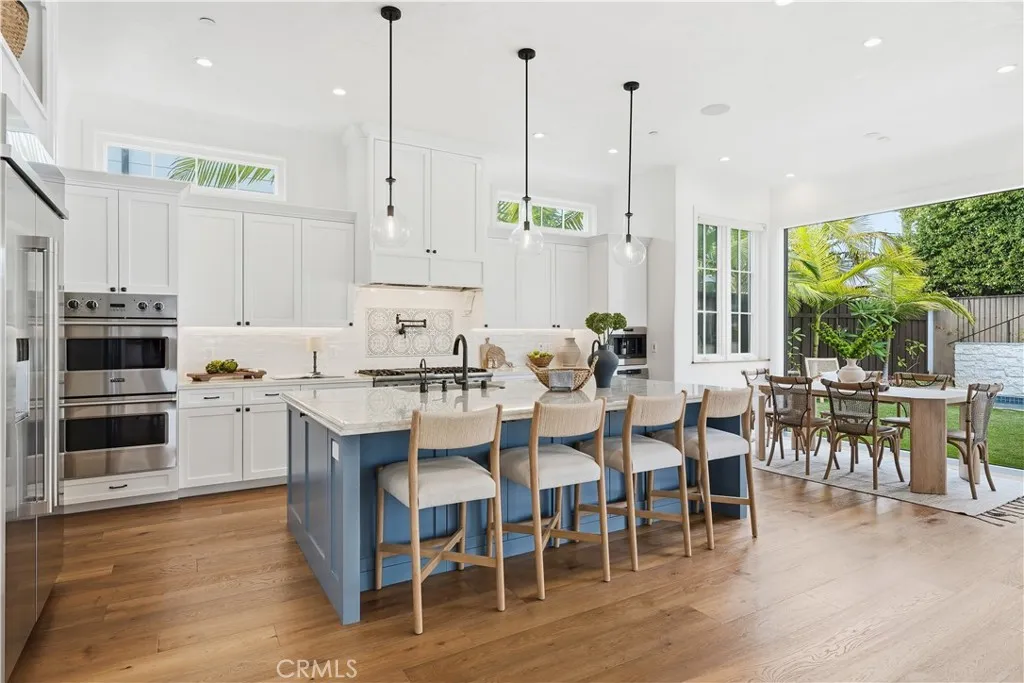 Rare East Manhattan Beach masterpiece where timeless elegance meets modern luxury. Built in 2021 by esteemed custom builder Patrick Kealy, on a coveted corner lot with a landscaped yard and white picket fence set the stage for timeless curb appeal. With 6 bedrooms, 6.5 bathrooms, a finished basement and approximately 5,738 SQFT (BTV) of living space on a 7,449 SQFT lot (BTV), this home offers scale without sacrificing warmth. Soaring ceilings and an open-concept floor plan flood the home with natural light and are enhanced by dramatic bi-folding doors that open seamlessly to a private backyard oasisfeaturing a pool, spa, built-in Wolf BBQ and a custom Korean BBQcreating the ultimate indoor-outdoor California lifestyle. The heart of the home is a chefs kitchen featuring top-of-the-line amenities with exquisite finishes, a walk-in pantry, stainless steel Viking appliances including double ovens, a bonus warming drawer, and a Wolf built-in espresso maker. The lower level offers a full basement with a full bar equipped with ice maker, refrigerator, and dishwasher perfect for a media room, playroom or a gym, complete with a guest suite. The upper level finds the majority of the bedroom suites, each with its own en-suite bathroom vaulted ceilings, and custom closets. The primary suite is like a retreat with a romantic fireplace and spa like primary bath. Located in one of Manhattan Beachs most desirable neighborhoods, East Manhattan Beach offers larger lots, larger homes, and close proximity to award-winning schools and parks. This residence is the Complete Family Retreat a home