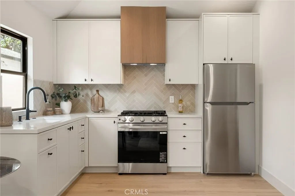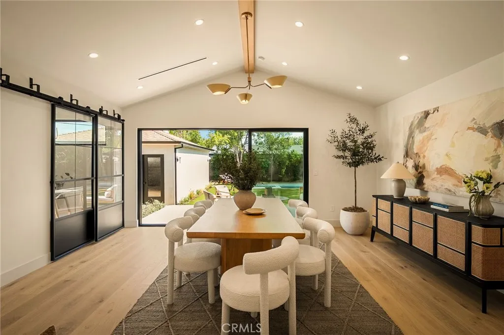 This beautifully reimagined home sits gracefully on a quiet street in one of Valley Villages most desirable neighborhoods. Thoughtfully redesigned from top to bottom, the 3-bedroom, 2.5-bath residence showcases sophisticated design, natural light, and seamless flow throughout its open-concept layout. The inviting living room, anchored by a cozy fireplace, connects effortlessly to the dining area and a chefs kitchen featuring a large island, custom White Oak cabinetry, Taj Mahal quartzite countertops, and premium appliances the perfect setup for gatherings and everyday living. Sliding doors open to a spacious entertainers backyard featuring a brand-new pool and spa, surrounded by lush greenery and ambient landscape lighting that create a private, resort-like retreat. The primary suite offers direct access to the backyard and a spa-inspired bath with a freestanding soaking tub. Each bedroom is spacious and filled with natural light, offering comfort and versatility for family, guests, or creative use. The home also features a dedicated laundry room with ample storage, carport parking, and a detached 1-bedroom ADU showcasing high ceilings and abundant natural light.. The propertys extended driveway provides generous parking for several vehicles, including space for an RV. Set on an expansive 8,100 sq. ft. lot, this 2,600 sq. ft. property blends modern luxury with timeless warmth, offering exceptional design and functionality in one of Valley Villages most desirable neighborhoods just moments from a House of Worship.