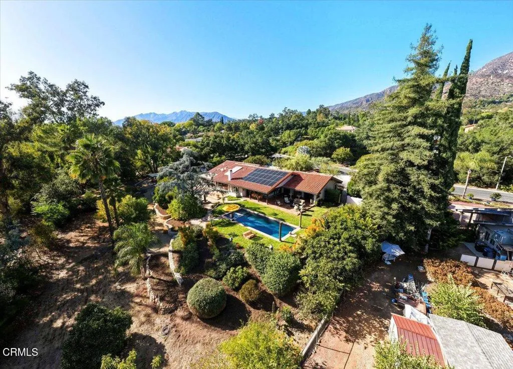Welcome to your Ojai retreat.Perfectly situated on a serene one-acre lot within walking distance to downtown Ojai, this stunning home offers the best of both worlds--peaceful privacy and close proximity to everything the valley has to offer.Located on the highly desirable Del Oro Drive, this property captures breathtaking Topa Topa mountain views from nearly every room. The home embraces true indoor-outdoor living, with large windows and doors that fill the space with natural light and frame the ever-changing colors of the Ojai sky.Inside, you'll find three bedrooms and three bathrooms, including two upgraded primary suites, each with walk-in closets and beautifully finished en suite baths. At the heart of the home, the kitchen opens seamlessly to a cozy dining area featuring a fireplace and charming window seat--perfect for sunny Ojai mornings or crisp winter evenings.The adjoining living room offers wall-to-wall windows that perfectly frame the famed Pink Moment sunsets and morning sunrises, while the formal living room features vaulted ceilings, creating an ideal setting for entertaining or quiet movie nights.Every detail of this home has been thoughtfully curated--from custom-picked crystals embedded in the granite kitchen island to locally hand crafted RTK Spanish-style tile in the renovated bathrooms, blending modern comfort with timeless Ojai charm. This home has been highly upgraded with features including, owned tesla solar and Powerwall, and EV charging station along with many more. Step outside to a backyard designed for relaxation and connection. A modern pool a