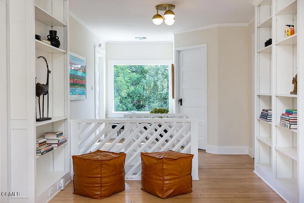 This classic 1910 Southern Georgian Colonial with 4 bedrooms and 2 bathrooms is a standout in Pasadena's northeast Jefferson Park, Pasadena Heights neighborhood. With hardwood floors throughout, the home boasts a welcoming formal entry area with an original two-sided staircase and unique banister beckoning you upstairs.To the entry's left a traditional living room with a large front window, fireplace and built-ins. To the right of the entry an oversized dining room with stately charm. Through the dining room discover a cheery green and recently updated kitchen with marble countertops and backsplash, stainless steel appliances and large under-mounted basin sink with ample lighting and a unique pass-through back to the dining room. Just off the kitchen a separate breakfast room with French doors provides an abundance of light and access to the backyard while also allowing you to round back to the living room or quickly upstairs. Beyond the kitchen and breakfast room find a secondary bathroom and laundry-mudroom combo.Upon ascending the stairs a large picture window greets you at the top with tranquil views of the backyard. Turn to discover an expansive second-floor landing with built-in bookcases. This mezzanine-like space could double as a den, library, office, retreat or media space. Off this bonus area find 4 bedrooms and an updated full bathroom--don't miss the amazing front balcony--an ideal place to enjoy morning coffee or evening cocktails while surveying community happenings from your high-up perch.The over 9,000 square foot lot offers a variety of fruit trees and gar