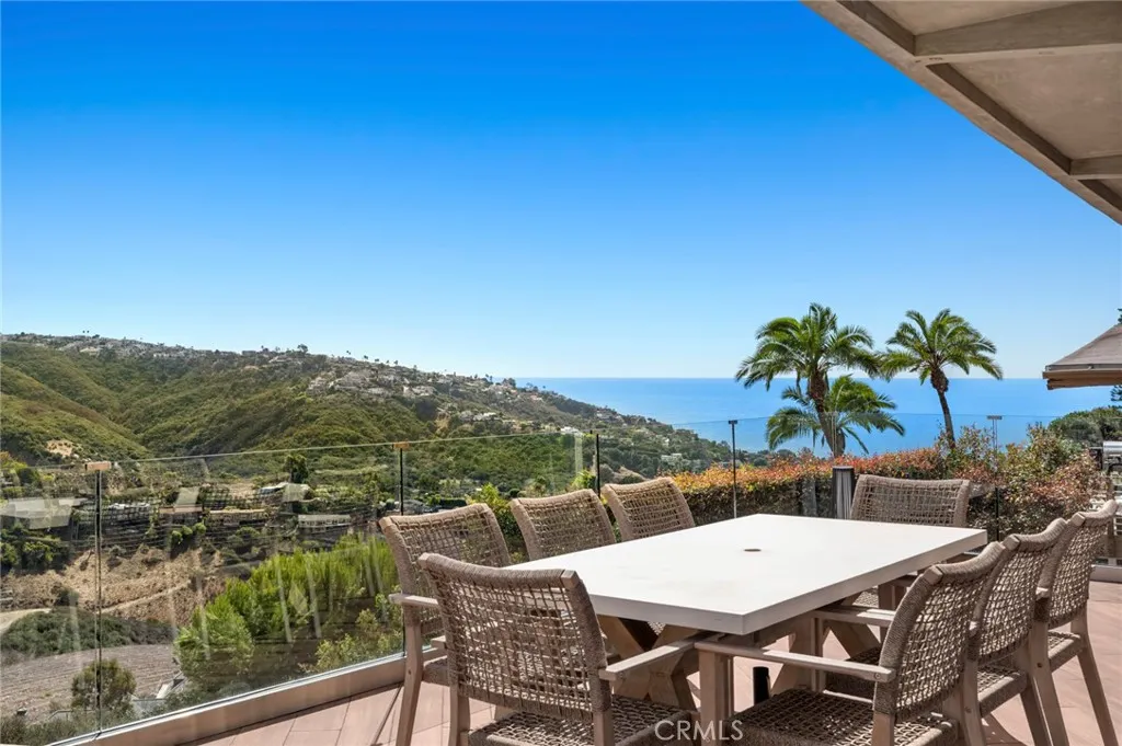 Discover coastal luxury at its finest with this stunning 5 bedroom, 4.5 bathroom contemporary residence in Laguna Beach. This breathtaking home seamlessly combines luxury with modern design, offering sweeping canyon and ocean views. Spanning 3,809 square feet, this architectural masterpiece blends indoor-outdoor living with elegance. Step through the grand foyer, illuminated by natural light, into an open-concept main level. Upon entry, youre greeted by stunning Brazilian Walnut hardwood floors and high beamed ceilings creating an inviting ambiance. The gourmet kitchen is a chefs dream featuring Caesarstone Quartz countertops, a commercial-grade gas stove and a Viking refrigerator. The main floor is home to the luxurious primary suite with its own private balcony, oversized walk-in closet, and a spa-like 5-piece ensuite bathroom. Two additional guest bedrooms and a full bath complete the main level, while the open living and dining areas are perfect for entertaining. Expansive glass sliders frame breathtaking vistas and ocean breezes into the main level. Downstairs, youll find two bedrooms complete with ensuite bathrooms and walk-in closets. Additionally, there is a versatile space that could serve as an office, gym, or additional living room. This level leads to a flat backyard designed for outdoor entertaining. The property also features a multi-car circular driveway with space for 5 additional cars and a two-car garage with direct access for added convenience. With its unmatched style, stunning views, and ideal location, this Laguna Beach gem offers the ultimate coastal