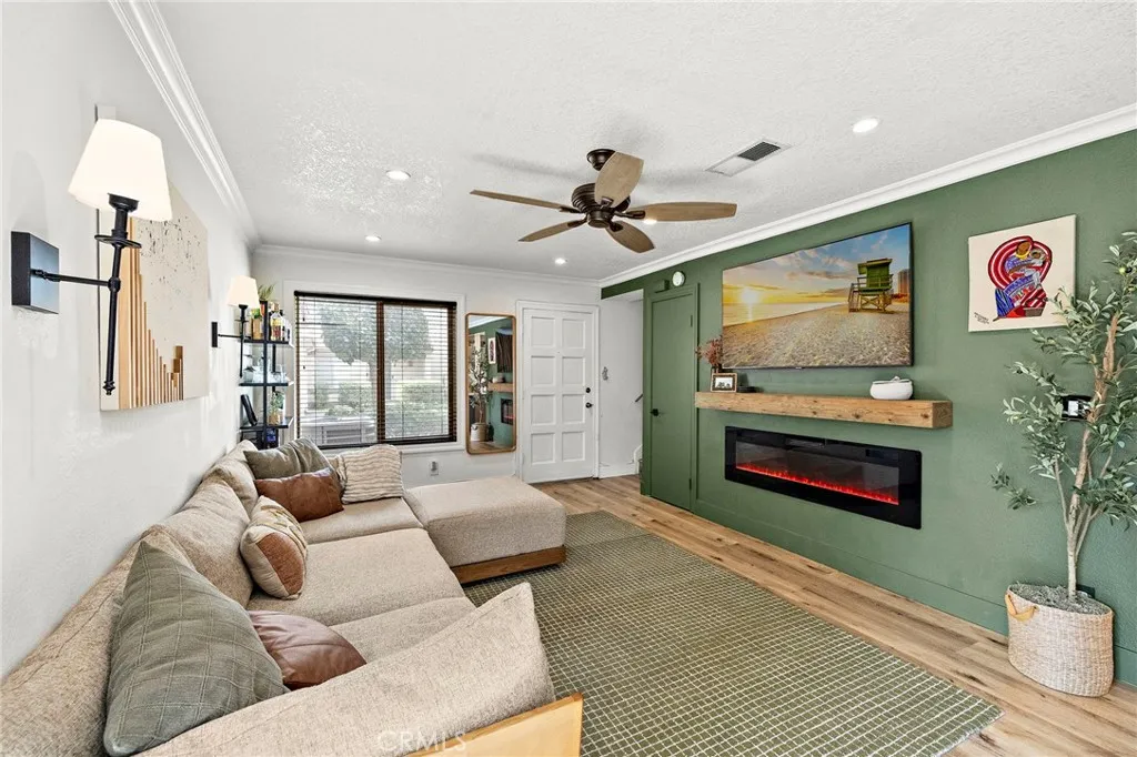 Discover the perfect blend of style and comfort in this beautifully upgraded two-story residence. Located in the desirable Anaheim Hills community, this home offers a modern aesthetic that feels straight out of a magazine. As soon as you step inside, youll be wowed by the stylish home featuring a stunning wood wall that adds character to the downstairs area, while wainscoting in the hallway exudes sophistication. The dining room features a chic light fixture, perfect for at-home dining and hosting gatherings. Enjoy the benefits of a new AC system and new flooring throughout the home, ensuring a fresh and inviting atmosphere. The kitchen features elegant quartz countertops and a new dishwasher, making meal preparation a joy. A new washer is included in the indoor laundry area for added convenience. The living room is enhanced with recessed lighting and a stylish electric fireplace, creating a warm and welcoming ambiance. A custom closet in the primary suite provides ample storage, ensuring that every space is utilized efficiently. Step outside to a low-maintenance backyard with lush turf, perfect for entertaining or enjoying quiet evenings outdoors. This home includes an attached two-car garage and access to two community pools, ideal for relaxation and socializing. Situated near top-rated schools, scenic trails, and parks, this property is perfect for families and outdoor enthusiasts alike. Dont miss the opportunity to make this designer home your own, its the ultimate combination of luxury, comfort, and convenience.