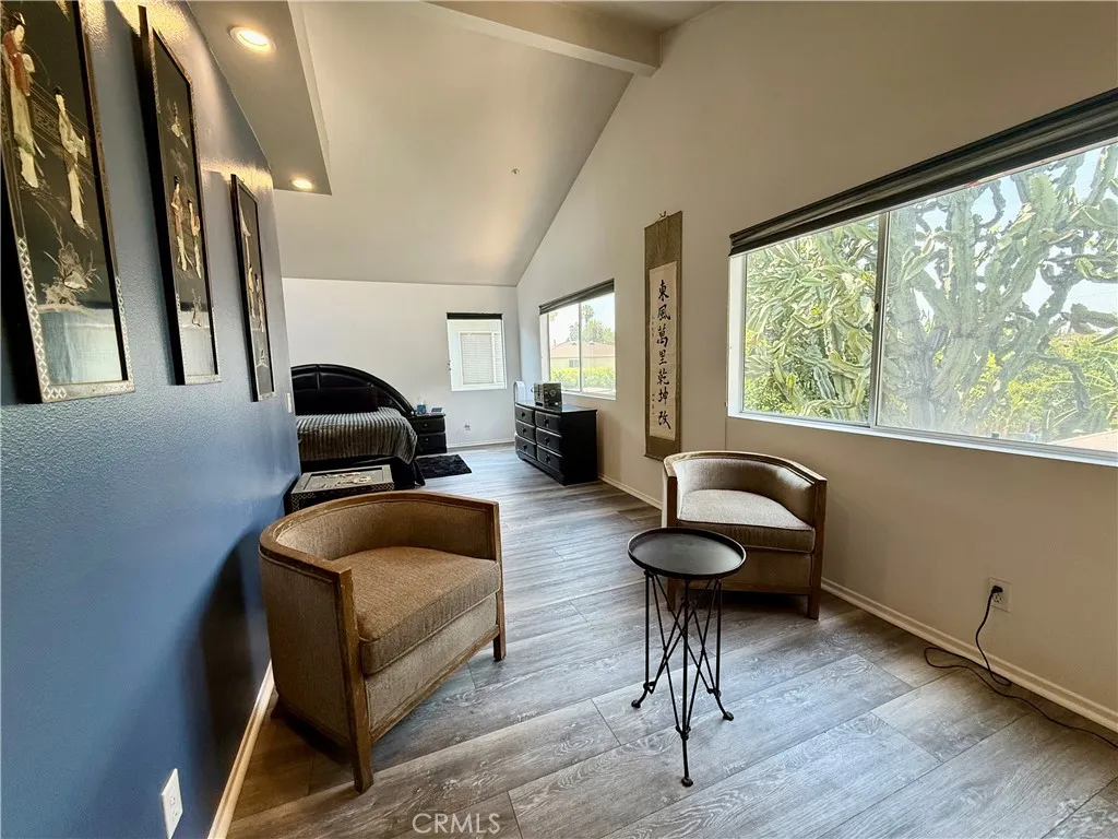 Welcome Home! This pride-of-ownership, free-standing two-story condo offers 1,896 sq. ft. of living space with 4 bedrooms and 3 full bathrooms, featuring numerous upgrades throughout. The flexible 4th bedroom (currently used as a formal dining room) is conveniently located on the main level with a full bathroom nearbyperfect for a multi-generational household or guest space. The living room boasts vaulted ceilings and arched windows framing a cozy fireplace. A custom kitchen provides ample storage, granite counters, high-end stainless steel appliances, and a charming garden window overlooking the private yard. The main level also includes side-by-side laundry and direct access to the backyard. A sliding glass door leads to the private enclosed yard, where youll find a covered gazebo with a fire pit table for six, mature avocado, fruit, and citrus trees, and striking flowering cactus for year-round beauty. Upstairs, the spacious primary suite features soaring ceilings, abundant natural light, a sitting area with fireplace, and a luxurious en-suite bathroom with jetted tub, separate shower, double sinks, and a large walk-in closet. Two additional bedroomsone with vaulted ceilings and the other with a charming built-in window seat3rd full bath completes the upper level. Additional highlights include: Newer carpet, flooring, and paint, Full security alarm system plus exterior & interior Ring cameras Epoxy-finished garage with insulated door, automatic opener, and storage (freezer included). Gated community with controlled entry. Lovingly cared for and on the market for the firs