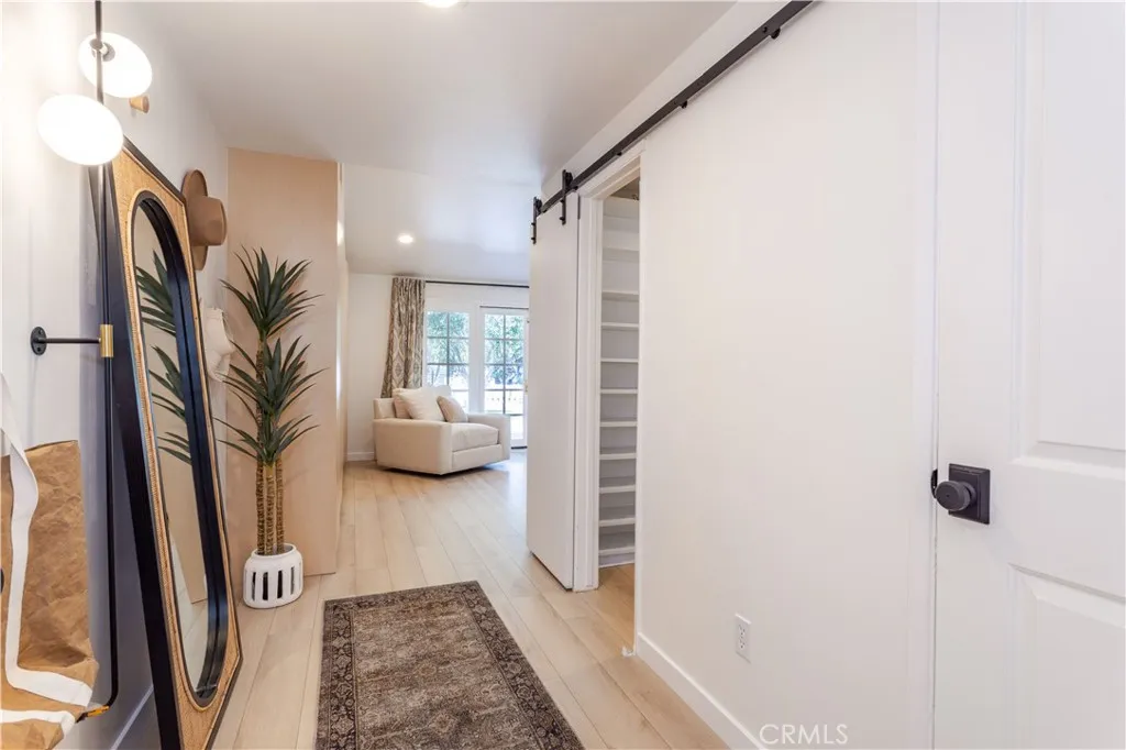 Stunning Mid-Century one story ranch seamlessly blends timeless charm with modern elegance. This is an interior designers home, every detail of this home has been carefully curated for style and functionality. A beautifully landscaped front yard sets a serene tone as you approach this 3,080-square-foot home, situated on an expansive 11,286-square-foot lot. Offering five bedrooms and four bathrooms, the layout is both spacious and versatile. The fifth bedroom and bath are privately positioned apart from the others, making it ideal for guests, extended family, or home office. The primary suite is a true retreat, featuring a walk-in closet plus an additional floor-to-ceiling closet space and French doors looking at the backyard. Its newly renovated ensuite bathroom boasts double sinks and a stunning marble shower. The additional bedrooms are generously sized, each offering ample closet space. One bedroom features a custom-built bunk bed, perfect for kids or anyone seeking a cozy, private space to read and relax. At the heart of the home, the open-concept kitchen is a chefs dream. Designed with soaring ceilings, an exposed beam, and custom cabinetry adorned with unlacquered brass handles, this space is both elegant and practical. Premium Thermador appliances, including a six-burner stove, extensive counter space, a custom wood center island, and an inviting eat-in kitchen area. The kitchen seamlessly flows into the great room, featuring a custom fireplace surround, built-in dry bar, and French doors that open to the backyardcreating a warm and inviting atmosphere. Step outside