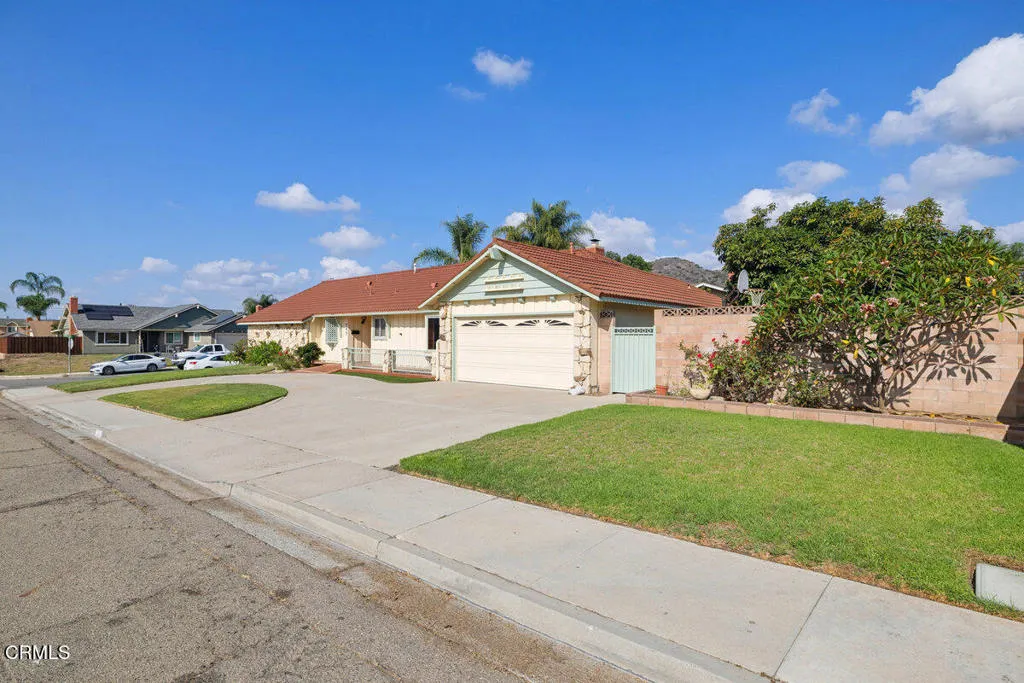 Exceptional 3-bedroom, 3-bath single-story residence with mountain views on a prime corner lot. The curb appeal of this Santa Paula gem immediately draws you in with its flagstone accents, wide tiled front porch, and classic Spanish-style red tile roof, setting the tone before you even reach the front door! A horseshoe driveway and vivid landscaping create a grand first impression and offer parking flexibility beyond the attached 2-car garage. Inside, the 2,038 sq ft layout unfolds with purpose and warmth. The stone slab fireplace anchors the living room, while glass sliders invite you to a covered patio ideal for alfresco entertaining. The dining area, brightened by a bay window, flows into a well-equipped kitchen with plentiful cabinetry and sleek countertops.Retreat to your generous primary where wood-style herringbone wainscotting adds rich texture and multiple closets meet your organization needs. A junior suite, complete with walk in shower. A bonus room.Situated near local shops, restaurants, Routes 126 & 150, and just a short drive to Ventura Beach. Make your next move feel like a destination as you explore what's waiting at this distinctive home!