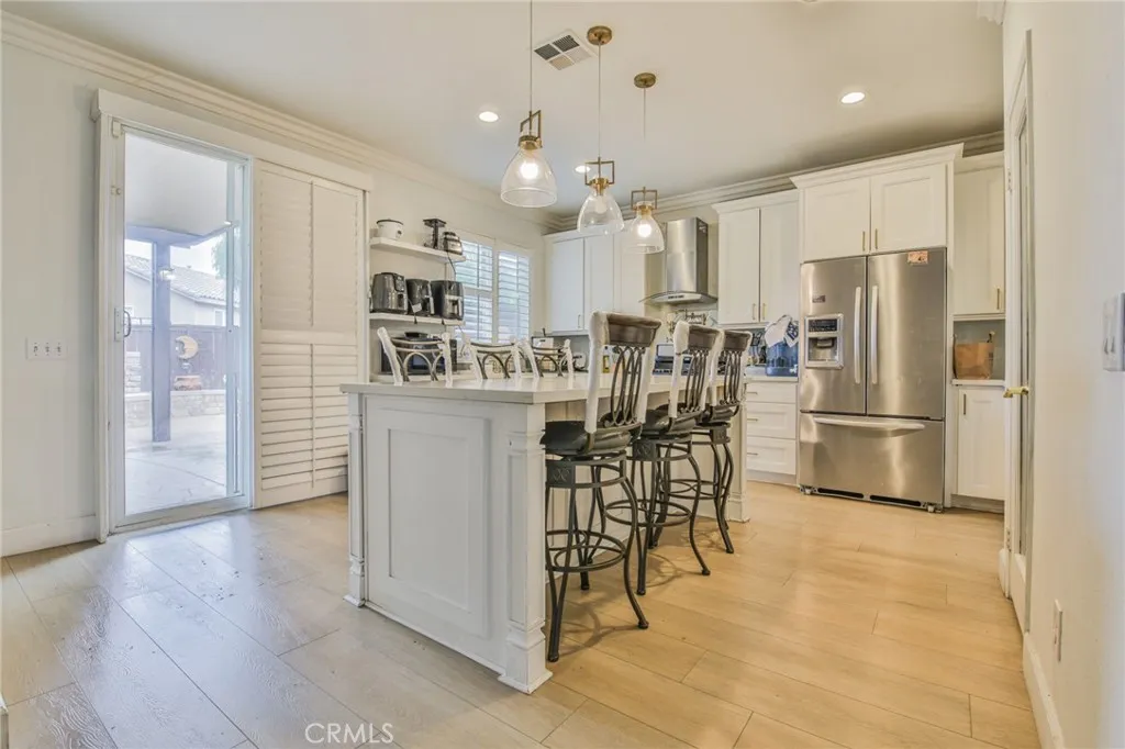 Incredible opportunity in Moreno Valley, Beautiful Home with nearly 2700 sq. ft. of luxury living. This 5-bed, 3-bath haven features a first-floor bedroom and full bath, ideal for guests. Crown molding and shutters adorn the open main living areas. The chef's dream kitchen boasts custom lighting, stainless steel appliances, quartz countertops, newer cabinets, wine refrigerator, pot filler, and a walk-in pantry. Upstairs, a spacious loft awaits, perfect for a game room or additional family space. The master suite offers a dual-sink en suite, jetted tub, walk-in shower, and a generous walk-in closet. Convenience reigns with a second-floor laundry room. Step into the landscaped backyard with a covered patio with ceiling fan, built-in outdoor fireplace, stamped concrete, stone planters, and flourishing lime trees. Property located close to Lake Perris State Recreation Area (around 5 miles) Close to Rancho del Sol Golf club (around 4.3 miles) Close to Major Shopping Centers, Restaurants, Hospitals, Schools etc... Don't miss out on this exceptional opportunity. Come and see it before it's too late.!!
