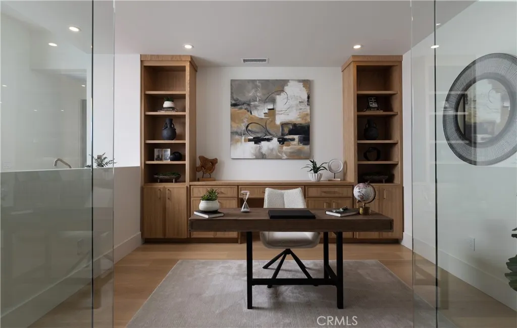 Experience the pinnacle of Newport Beach living in this brand-new, single-story masterpiece spanning 4,677 square feet of refined design and modern luxury. Set on one of Dover Shores most desirable streets, this architectural gem blends sophisticated style with effortless indoor-outdoor living. Step inside to soaring ceilings and a dramatic 33-foot motorized sliding glass wall that opens seamlessly to your private backyard retreat complete with a sparkling pool, BBQ island, firepit, and elevated deck for entertaining under the sun or stars. The heart of the home is the chef-inspired kitchen, featuring Thermador appliances, Le Blanc quartzite countertops, and a walk-in pantry, all framed by custom cabinetry and natural stone finishes found throughout the residence. The 1,000 sqft primary suite is a sanctuary, boasting a coffee bar, his-and-hers layout, makeup vanity, freestanding tub, and an oversized shower wrapped in breathtaking Michelangelo Dolomite quartzite slabs. Three additional ensuite bedrooms, a glass-enclosed office, and a den provide versatility for family and guests alike. Upstairs, the expansive rooftop deck delivers panoramic, forever Back Bay views, complete with a firepit, BBQ, and bathroom, creating the ultimate space for sunset gatherings. Additional highlights include a 3-car garage and a fully integrated Savant home automation system, ensuring every modern convenience is at your fingertips. This is modern coastal living at its finest. 1918 Santiago is a home where every detail is intentional, every finish is natural, and every view is extraordinary.