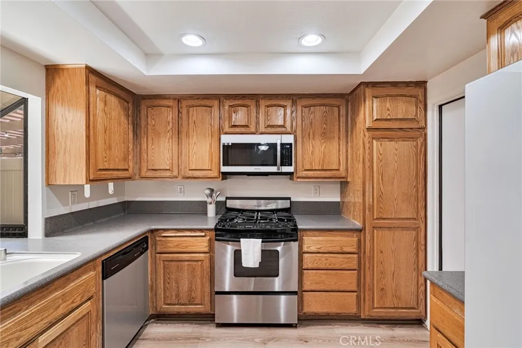 Say hello to this lovely home nestled within one of Santa Clarita's most sought-after gated communities. Boasting a single-story layout, this townhome offers the charm and comfort of a single-family home, complete with a convenient attached 2-car garage, a private driveway, and a delightful backyard adorned with flowers and a covered patio. The interior living area showcases new flooring, vaulted ceilings and a sunlit living room with a cozy fireplace, seamlessly flowing into the dining area and kitchen. The kitchen has newer appliances and ample storage space. Down the hall, you will find 3 generously sized bedrooms. The primary bedroom suite has vaulted ceilings and a walk-in closet. Throughout the home, plantation shutters add a touch of sophistication and privacy. Residents of this remarkable community can indulge in resort-like amenities, including gated access, onsite management, private security, tennis courts, Olympic-sized swimming pool, spa and sauna, Sport Court, scenic greenbelts, and a charming nine-hole par 3 golf course!