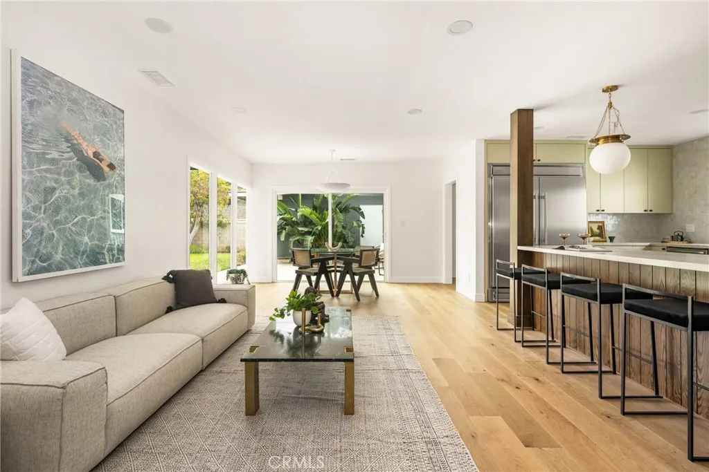 Welcome to 1052 E. Andrews Dr. in the highly sought-after Bixby Knolls neighborhood a beautifully reimagined single-story home that perfectly balances modern design with timeless comfort. Set on a large 11,011sf lot, this 4-bedroom, 2.5-bathroom residence spans over 3,341sf of well-designed living space, fully remodeled with permits. From the moment you step inside, natural light, engineered oak hardwood floors, and an effortless open flow connect the main living areas with warmth and sophistication. The spacious living room features a statement fireplace and oversized windows overlooking the tree-lined street, creating an inviting space for gatherings or quiet evenings at home. At the heart lies the stunning chefs kitchen, complete with custom cabinetry, Taj Mahal quartzite countertops, brass hardware, and high end stainless steel appliances. The large island with bar seating opens seamlessly to the dining area and family room, making it ideal for entertaining. Sliding glass doors invite indoor-outdoor living and lead to a lush backyard surrounded by mature tropical landscaping & multiple patio areas. The primary suite serves as a serene retreat with abundant natural light, a walk-in closet, and a luxurious ensuite bathroom featuring a soaking tub, glass-enclosed shower, and dual vanity with modern finishes. Additional bedrooms are spacious and versatile, perfect for family, guests, or a home office. Each bathroom is beautifully appointed with designer tile work and elevated lighting selections. Every detail has been carefully curated from the lighting and hardware to th