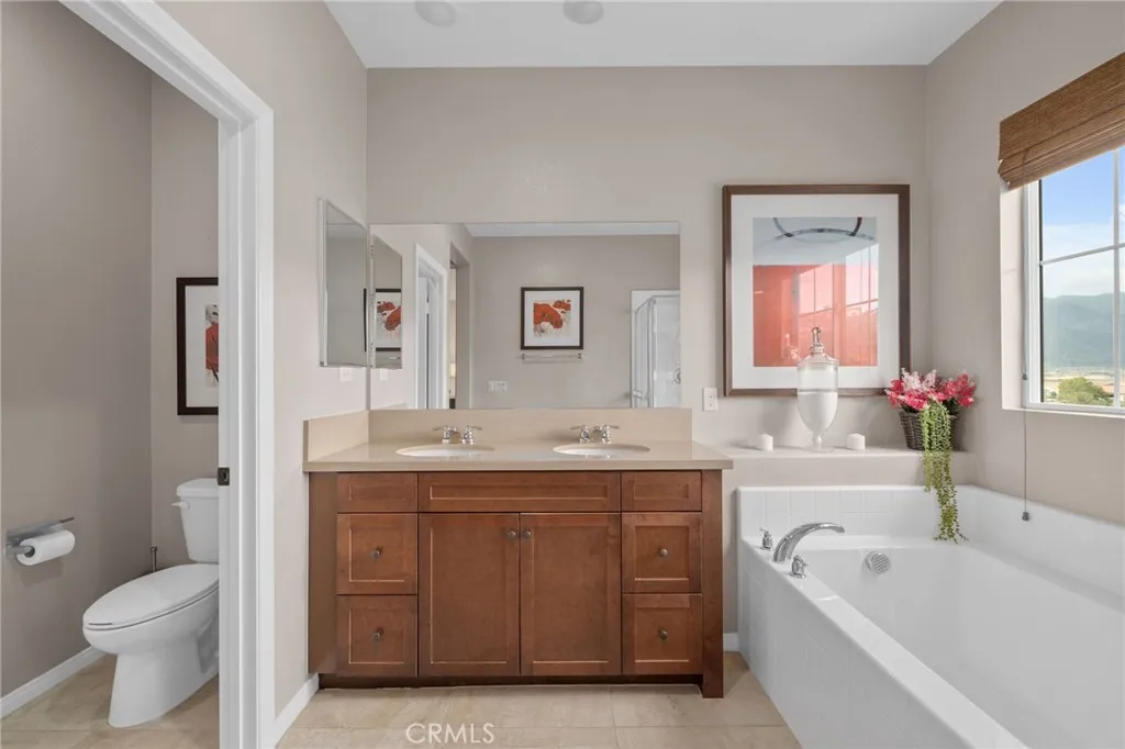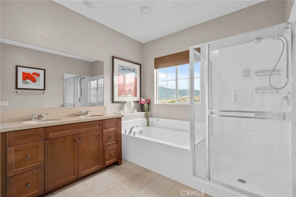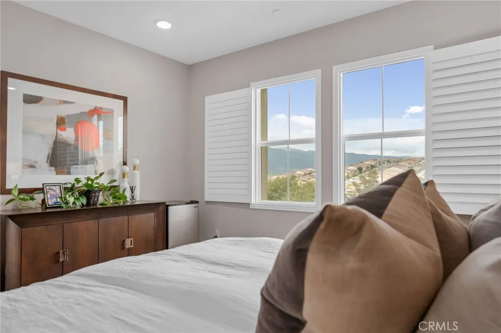 This stunning former model home is located in the exclusive gated community of Terramor and offers beautiful curb appeal with well-maintained, manicured yards and low-maintenance turf in both the front and back. Featuring 4 bedrooms and 3 bathrooms, this home boasts a highly desirable floor plan with one bedroom with a walk-in closet and a full bathroom conveniently located on the main floor. The open-concept living space showcases a gorgeous kitchen with a large island, maple-stained cabinetry, tile backsplash, built-in cooktop, and double ovenall overlooking the spacious family room and capturing the scenic views beyond. The family room is enhanced by custom built-ins, a cozy gas fireplace, and plantation shutters with roll-down shades for added comfort and privacy. Upstairs, you'll find a versatile loft, a luxurious primary suite with impressive views, two additional bedroomsalso offering stunning viewsa full bathroom, and a dedicated laundry room. Step outside to a fully landscaped backyard oasis, complete with fruit trees, mini putting green, and no neighbors behind you, providing both beauty and privacy. The epoxied garage floors add a clean, durable finish to the spacious garage. Residents of Terramor enjoy resort-style amenities, including gated entry, parks, pool, clubhouse, walking and hiking trails, and more. This energy-efficient home also includes solar panels, making it as smart as it is stylish.