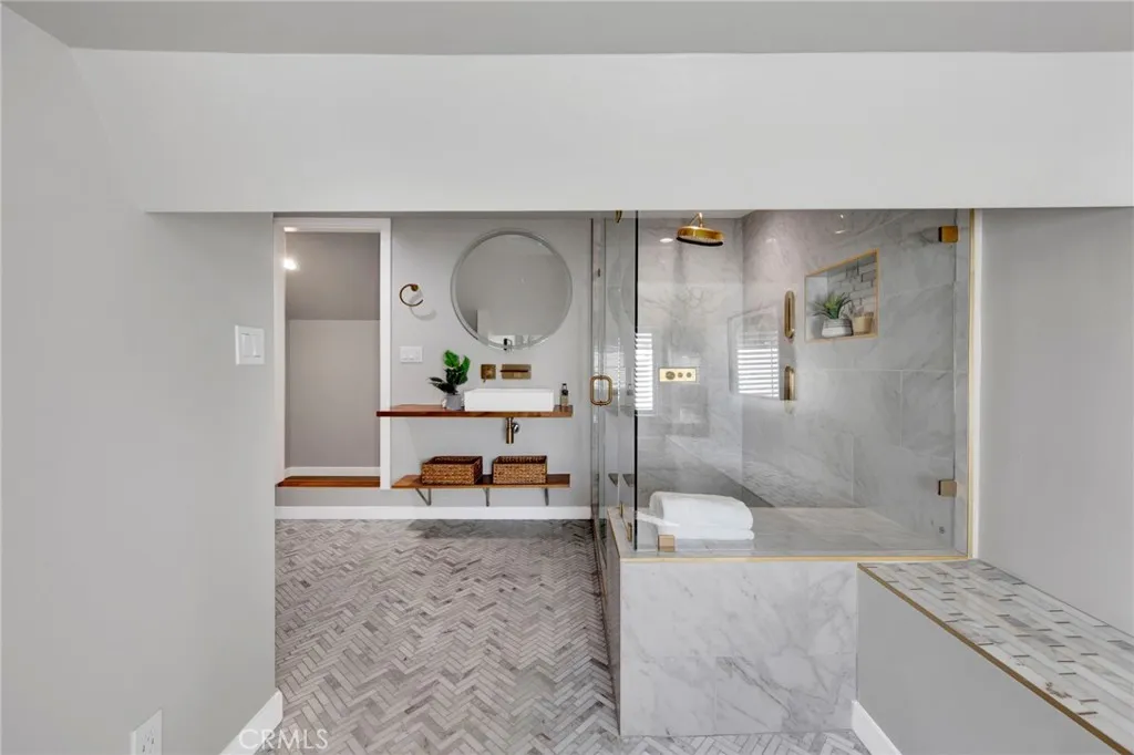 An Entertainers Dream in the Heart of Long Beach, 5025 E Los Coyotes is a stunningly remodeled residence that blends modern comfort with resort style living. This spacious 3 bed, 3.5 bath home offers an open and inviting layout, plus a bonus 400 sq. ft. flex space above the garage perfect for a junior ADU, home office, or guest suite. Step inside to find wide plank luxury laminate flooring, fresh interior and exterior paint, and a newly renovated kitchen featuring sleek cabinetry, stone countertops, and stainless steel appliances. The expansive great room seamlessly connects the living, dining, and kitchen areas ideal for both everyday living and large gatherings. The homes crown jewel is the backyard, a true entertainers paradise. Enjoy Californias indoor-outdoor lifestyle with a custom pool and spa, baja shelf for sunbathing, and a BBQ bar area with tons of seating all surrounded by lush landscaping for privacy and relaxation. An outdoor shower adds a touch of luxury after a swim or sauna session. Additional highlights include: Sauna for relaxation and wellness, Tesla wall charger, leased solar system with two Tesla Powerwalls, ample driveway and garage parking, updated bathrooms with designer finishes. Located on a wide, tree-lined street in East Long Beach, this home offers easy access to shopping, dining, golf courses, parks, major freeways and top-rated schools. Experience the perfect blend of comfort, sophistication, and California living this is the entertainers dream youve been waiting for.