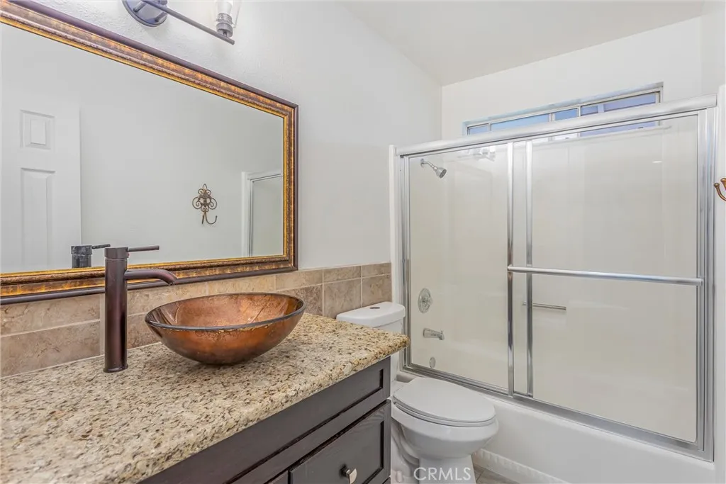Freshly updated single-story home situated on a spacious corner lot of just over 1/3 of an acre. This inviting residence offers a freshly painted interior and exterior, along with many modern updates throughout. As you enter, youre welcomed into a bright and open great room that combines the family room, dining area, and kitchenideal for everyday living and entertaining. The kitchen features granite countertops, a large center island with breakfast bar seating, and brand-new stainless steel appliances including a gas range, microwave, and dishwasher. A nearby dining room is open to the kitchen, creating a seamless flow for gatherings and everyday meals. The family room showcases a charming brick fireplace with a wood stove insert, ceiling fan, and sliding glass door leading to the rear covered patio. Recent upgrades include recessed lighting, neutral paint tones inside and out, and new laminate wood flooring throughout. Down the hall are three spacious bedrooms, each with laminate flooring and ceiling fans. The two secondary bedrooms share a full bath with a granite vanity with a decorative countertop sink, and shower/tub combo, while the primary suite offers its own ensuite bath with matching finishes. Outside, enjoy a large, fully fenced backyard with a covered patio, storage shed, and endless possibilities for customization. Additional highlights include a two-car attached garage with laundry hookups and side yard space for potential RV parking. Conveniently located near schools, shopping, and freeway accessthis move-in-ready home is a must see!