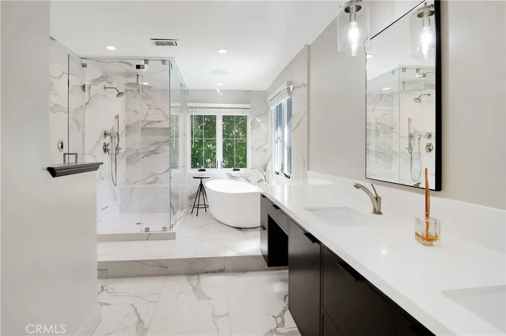 Privately situated behind secluded gates in one of Tarzanas most sought-after neighborhoods just South of Ventura Boulevard, this timeless 1-acre tennis court estate is an exclusive sanctuary. Two gates open to a long, treelined driveway and sprawling park-like lot, where mature landscaping and a classic architectural design create striking curb appeal. Featuring over 5,500 square feet of thoughtfully designed living space, this modern traditional 2-story features 6 spacious bedrooms and 6 bathrooms. Oversized glass doors from the formal dining area open to the patio overlooking the pool and spa, seamlessly blending indoor and outdoor living. A flexible downstairs roomperfect as a music studio, lounge, or studyadds versatility to the floor plan, along with a quiet home office. The chefs kitchen is a true showpiece, outfitted with premium Miele appliances, double ovens, marble countertops with backsplash, and custom cabinetry. A breakfast nook perfectly appointed next to large windows and doors opening out to another outdoor space. An oversized family room with beautiful wood beamed ceilings, fireplace, and floor to ceiling sliding glass doors which fully open to create a disappearing corner and bring the outside in. Adjacent to the rec/ game room, complete with bar and pool table. Upstairs, the primary suite serves as a private retreat, featuring a contemporary electric fireplace and its own secluded terrace with sweeping views of the pool and tennis court. The spa-inspired bathroom features sleek porcelain finishes, a soaking tub, walk-in steam shower, dual sinks, modern c