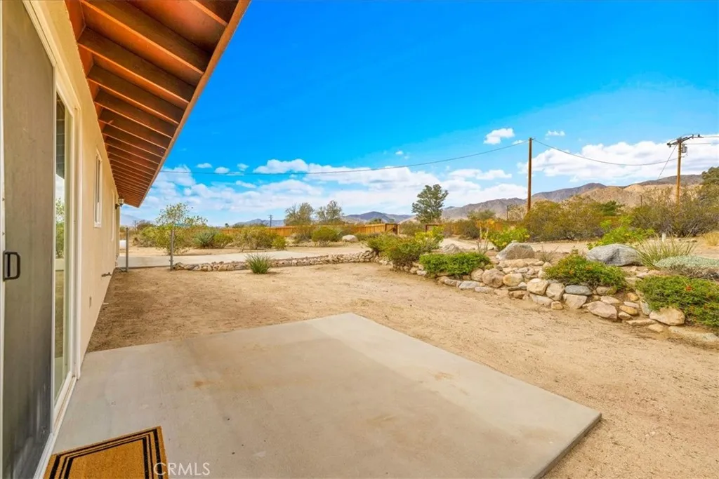 Discover your own slice of desert perfection in this beautifully refreshed Morongo Valley gem! Set on 5 sweeping acres of pristine desert landscape, this 1998-built 2-bedroom, 1-bath home offers stunning panoramic views of dramatic, jutting hills, an ever-changing masterpiece of light and shadow. Recently updated with a brand-new cool roof and fresh interior paint, this showplace radiates a modern yet inviting feel. Inside, a stylish open-concept layout blends comfort and design. The spacious living and dining area, bathed in natural light from ample windows and glass doors, provides a seamless flow thats ideal for entertaining or simply relaxing in peace. The showstopper kitchen boasts elegant cabinetry, gorgeous granite countertops, a chic glass mosaic-accented subway tile backsplash, and a classic apron-front farmhouse sink. Stainless steel appliances, including a 5-burner range, dishwasher, refrigerator, and microhood, make cooking and hosting effortless. Wood-look ceramic tile flooring throughout adds warmth and sophistication. Both bedrooms have ample closet space and offer inspiring views. The updated bathroom features a sleek vanity and contemporary cabinetry, adding just the right touch of luxury. Dual-pane windows and central HVAC ensure year-round comfort, keeping you cool in summer and cozy in winter. A finished 2-car garage with laundry machines adds versatility and convenience, while an insulated storage shed expands your possibilities. An automatic gate welcomes you onto the acreage, where privacy, stargazing, and enjoyment await. Fresh, modern, and move-in r