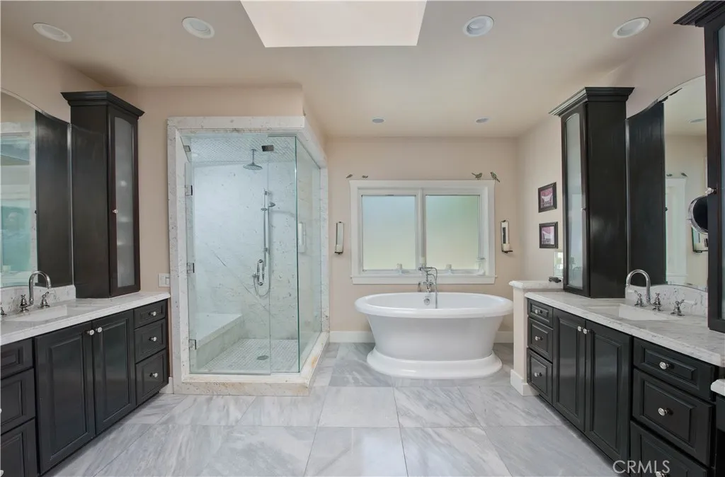 Welcome to one of the most spectacular single-story, ranch style custom estates in Knollwood! The moment you arrive, the striking curb appeal sets the tonebeautiful rock hardscaping leads to a private, gated courtyard with serene fountain and tranquil seating areas that greet you. Step through custom wood double doors w/beveled glass and discover nearly 4,300 sq. ft. of luxurious living space. Upon entry you immediately notice the views of the resort-like backyard through the oversized sliding glass doors of the spacious and bright living room that has custom built-ins and fireplace. At the heart of the home is a gourmet chefs kitchen, designed to impress w/Argentinean marble floors, oversized center island, DCS 6-burner stove, double ovens, warming drawer, dual sinks, Sub-Zero refrigerator, wine fridge, fireplace & exceptional storage. The kitchen flows seamlessly into the dining room and onward to a step-down, expansive family room w/custom built-ins and cozy fireplace. Surrounding the family room is a bonus upper open area, ideal for bar or pool table- the perfect entertaining spot w/oversized glass sliders that frame serene views of the entertainers backyardcreating a seamless indoor-outdoor flow. Thoughtful floor plan features two private wings, creating an ideal layout for the five bedrooms and four baths. The primary retreat is a sanctuary of luxury, boasting a fireplace, custom up lighting, built-in wardrobes and fully finished walk-in closet. The spa-like primary bath features Carrera marble, heated floors, dual vanities, whirlpool soaking tub, oversized steam show